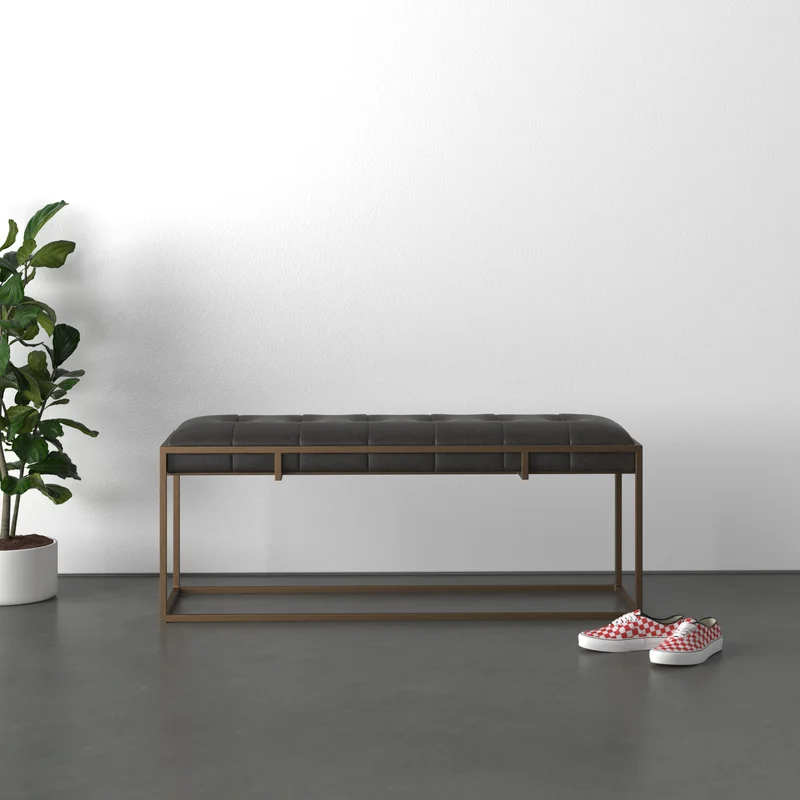 Get cozy with your favourite person on our stylish two-seater ottoman with a sleek metal base. Perfect for snuggling up or simply putting your feet up in style.