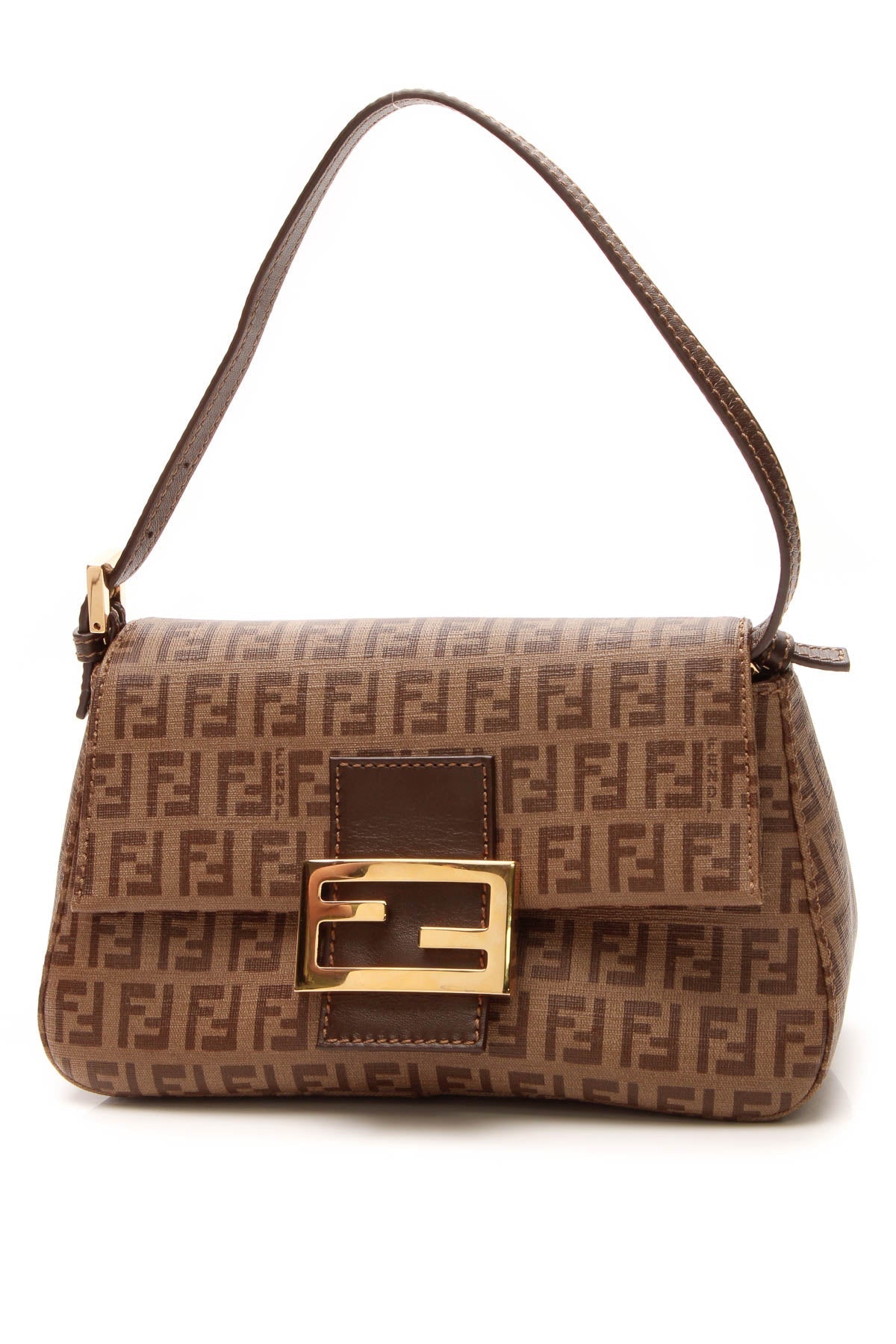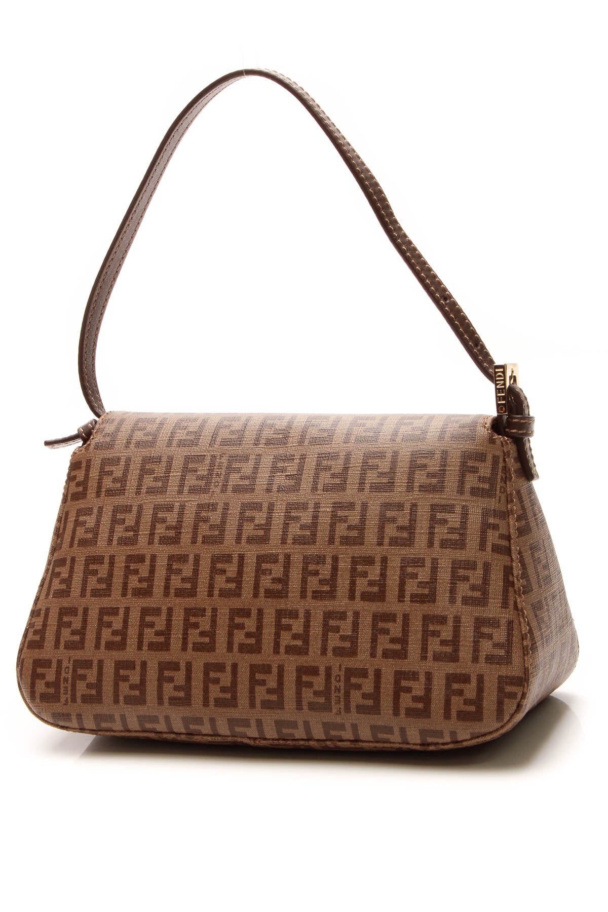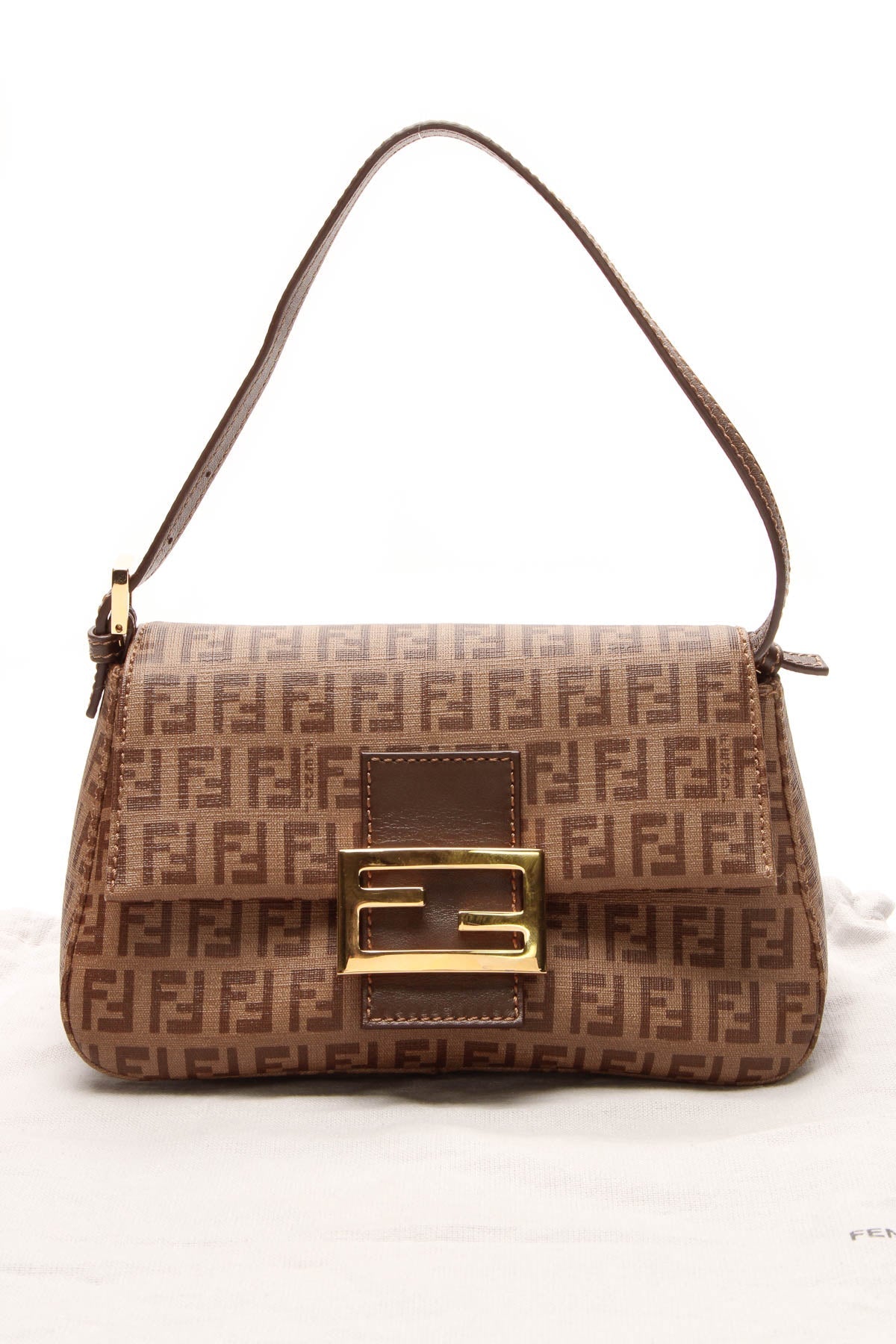 A spunky little addition to casual attire, this authentic Fendi baguette bag is the perfect match! The dynamic Zucchino coated canvas shows off the signature Fendi logo and is highlighted with a striking buckle closure. This bag can be used day or night for a versatile and feisty look!
