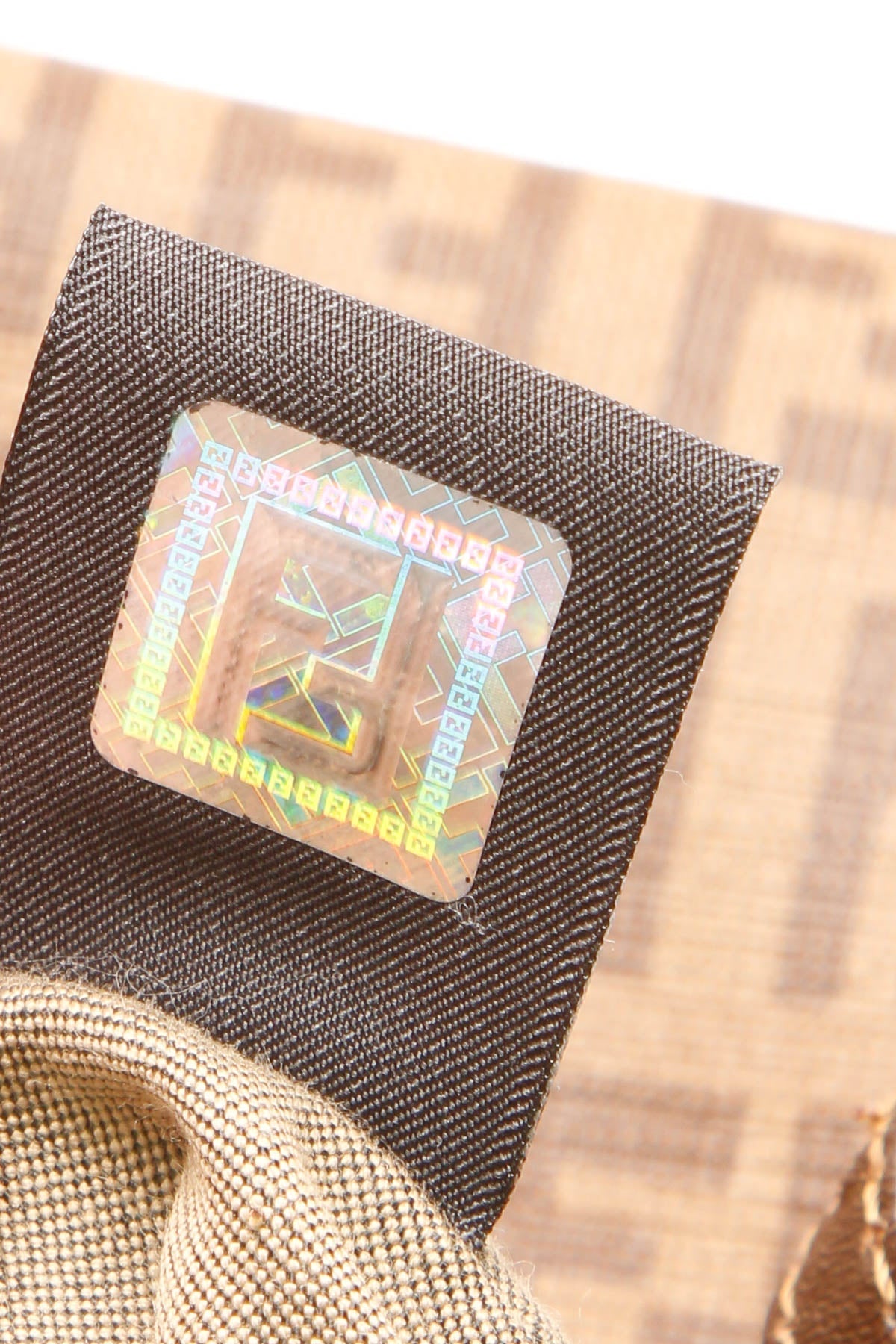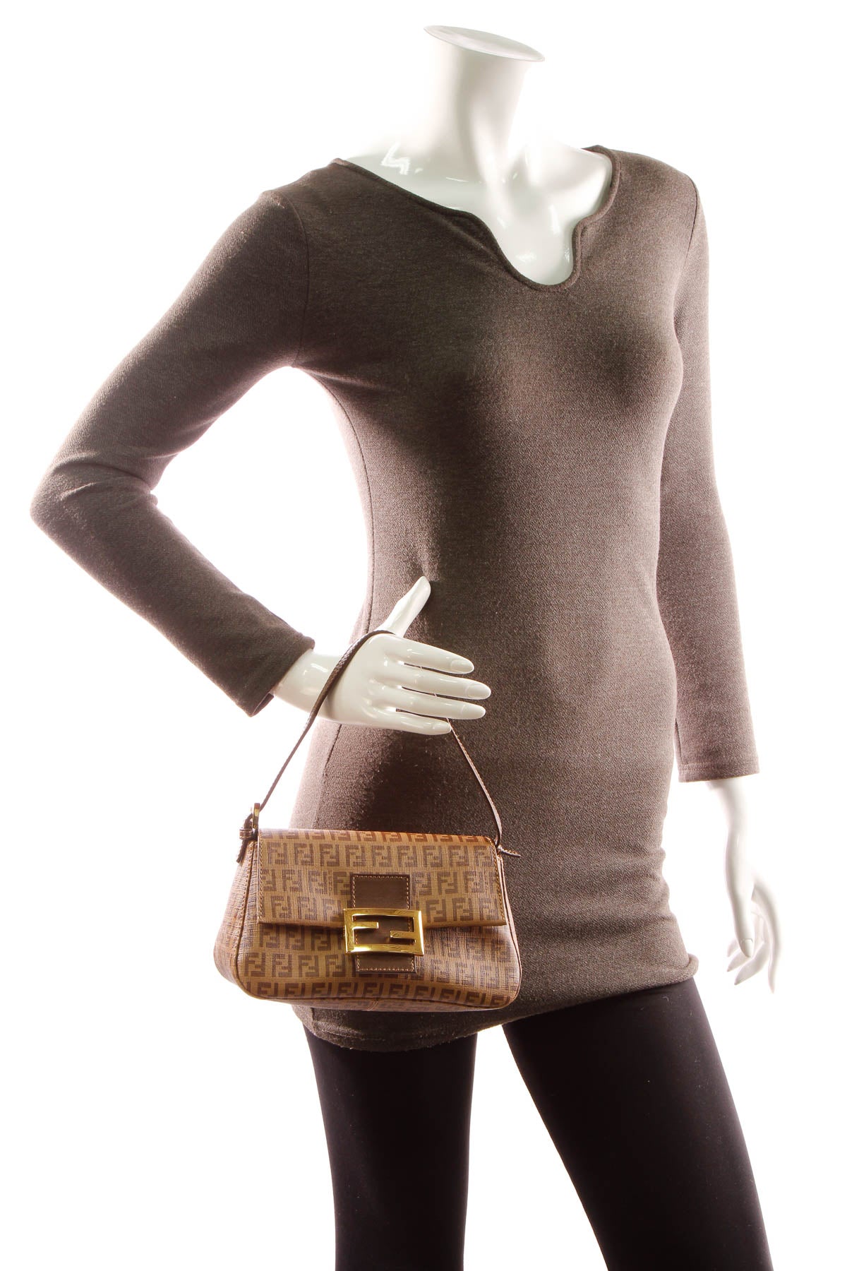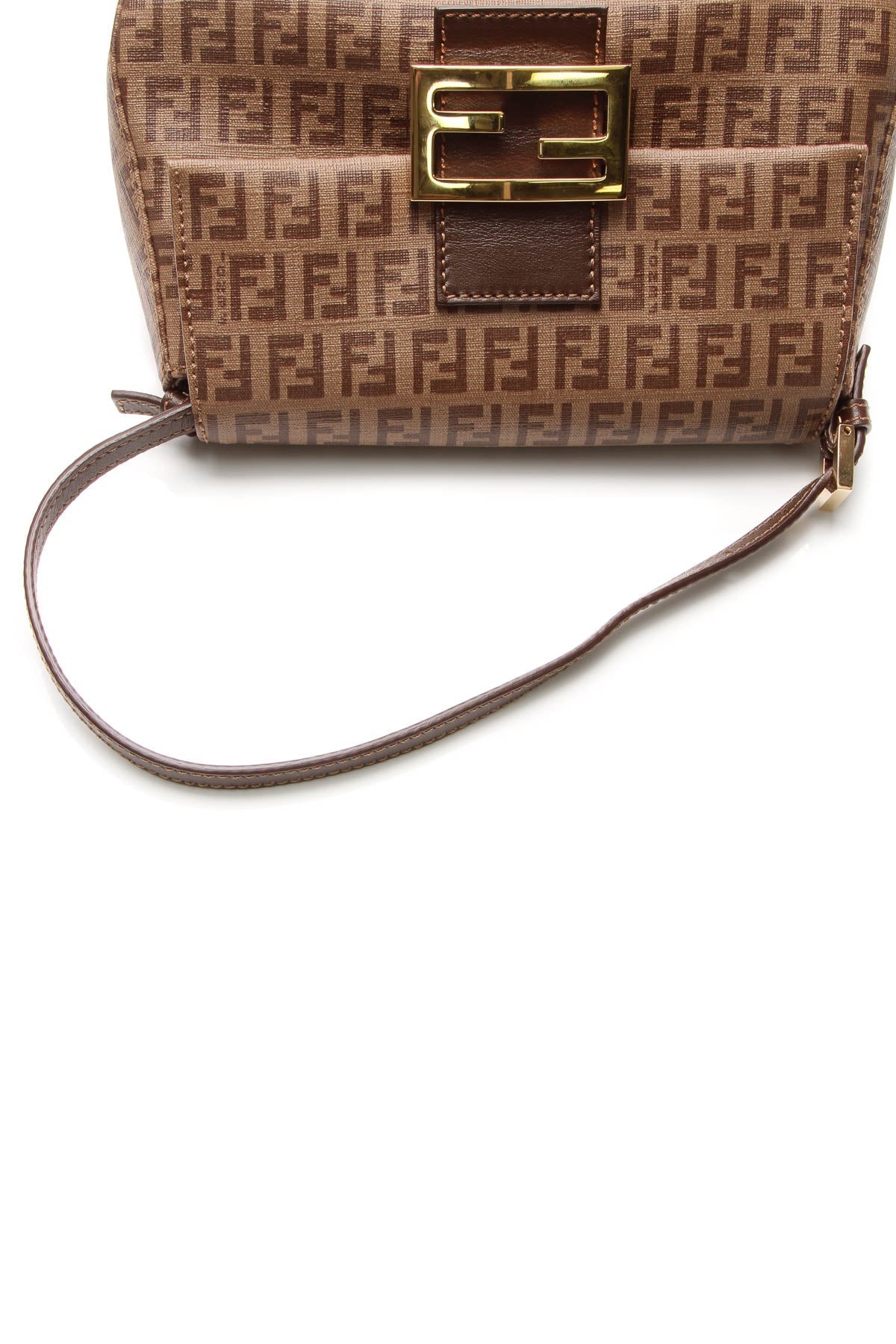 A spunky little addition to casual attire, this authentic Fendi baguette bag is the perfect match! The dynamic Zucchino coated canvas shows off the signature Fendi logo and is highlighted with a striking buckle closure. This bag can be used day or night for a versatile and feisty look!
