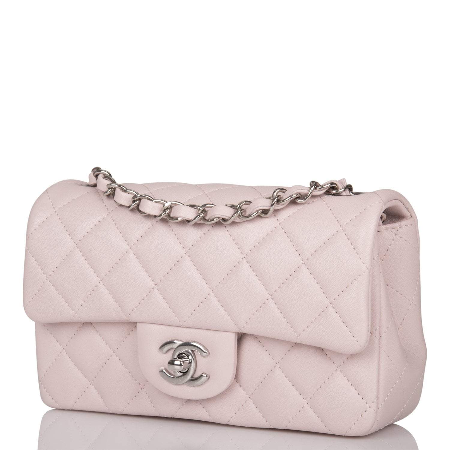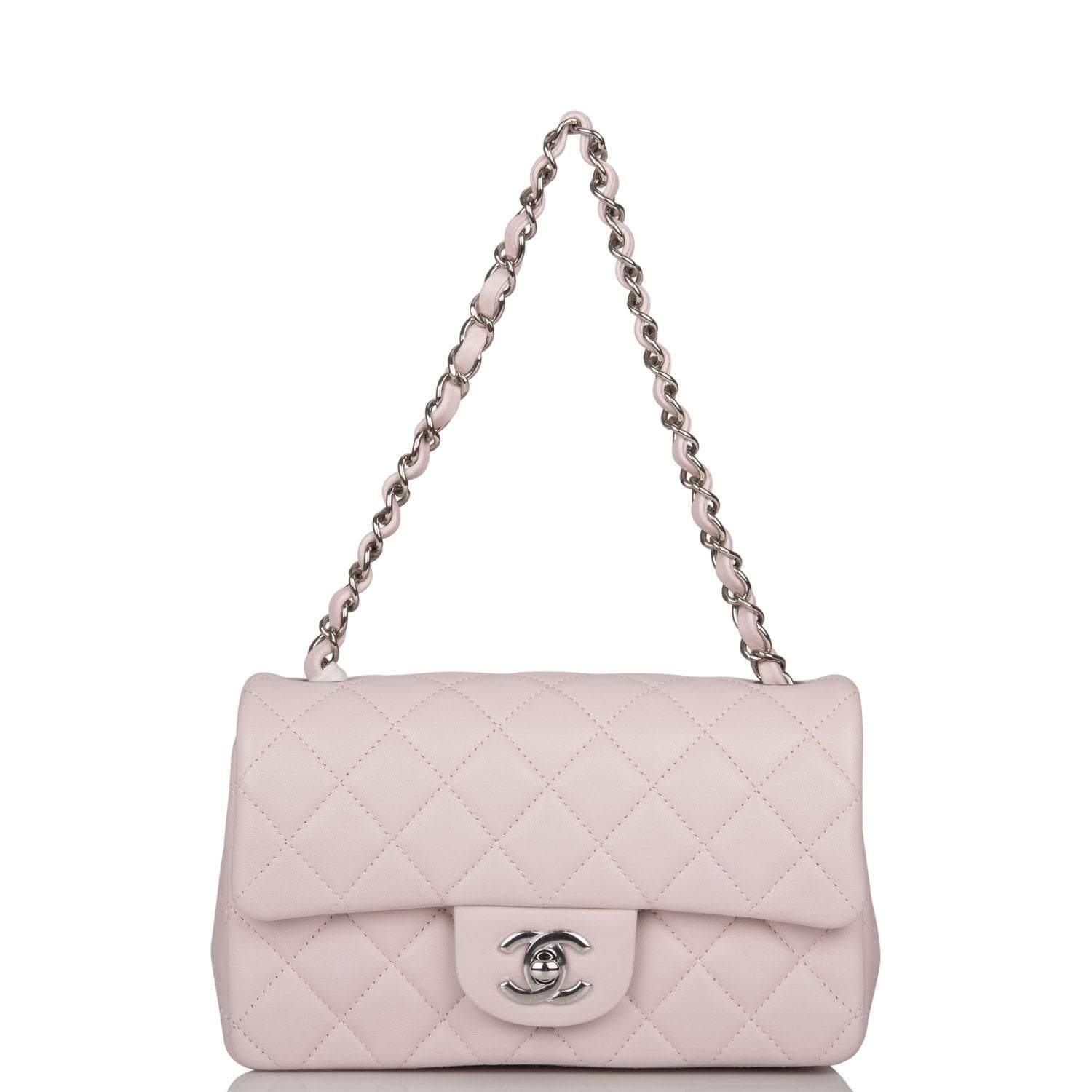 Chanel Mini Rectangular Flap Bag Light Purple Lambskin Silver Hardware