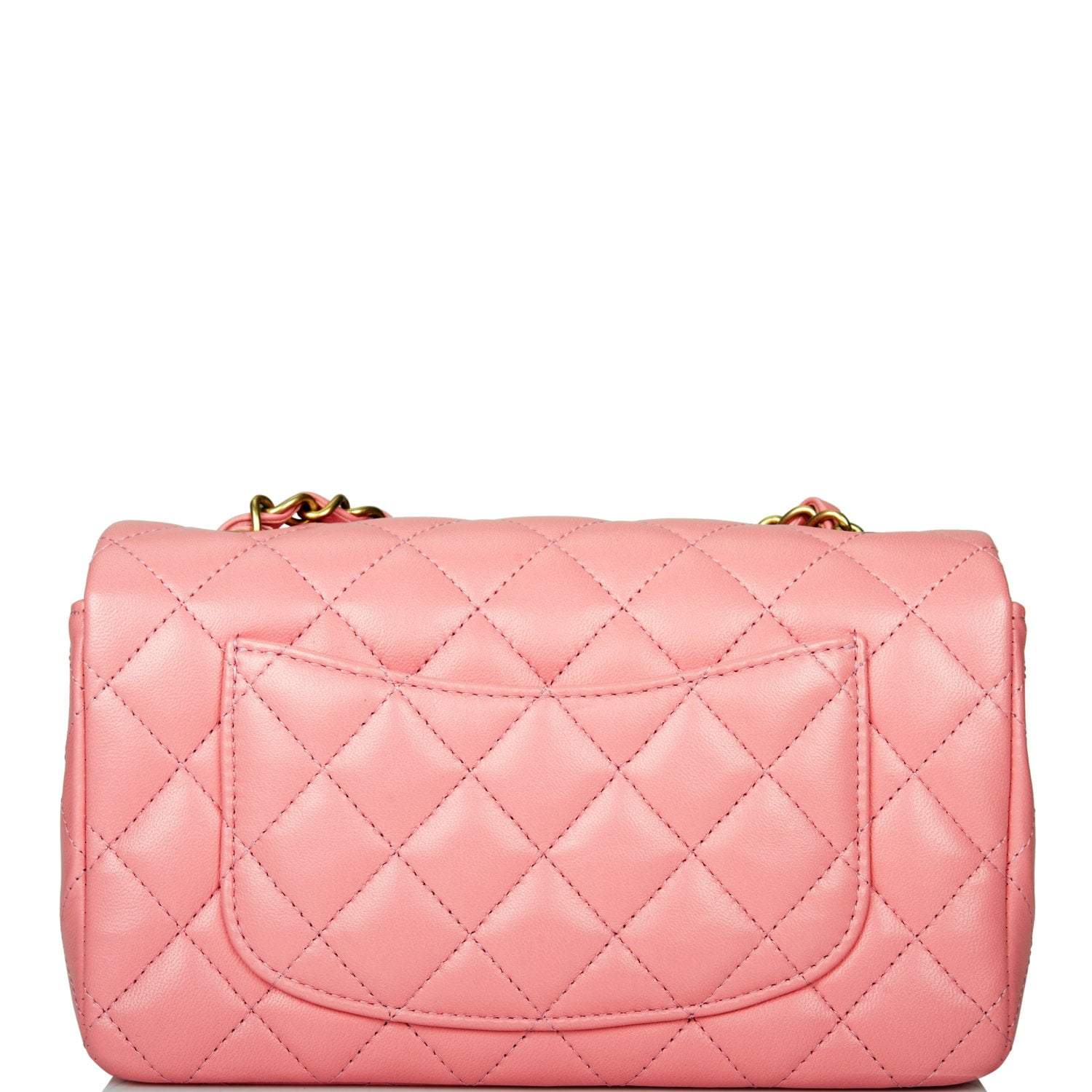 Chanel Pink Quilted Lambskin Rectangular Mini Classic Flap Bag Antique Gold Hardware