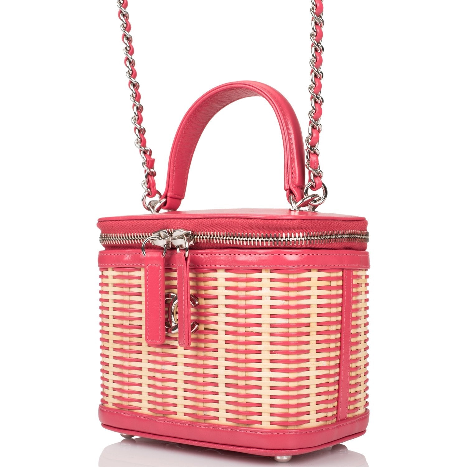 Chanel Pink Small Rattan Vanity Case Silver Hardware
