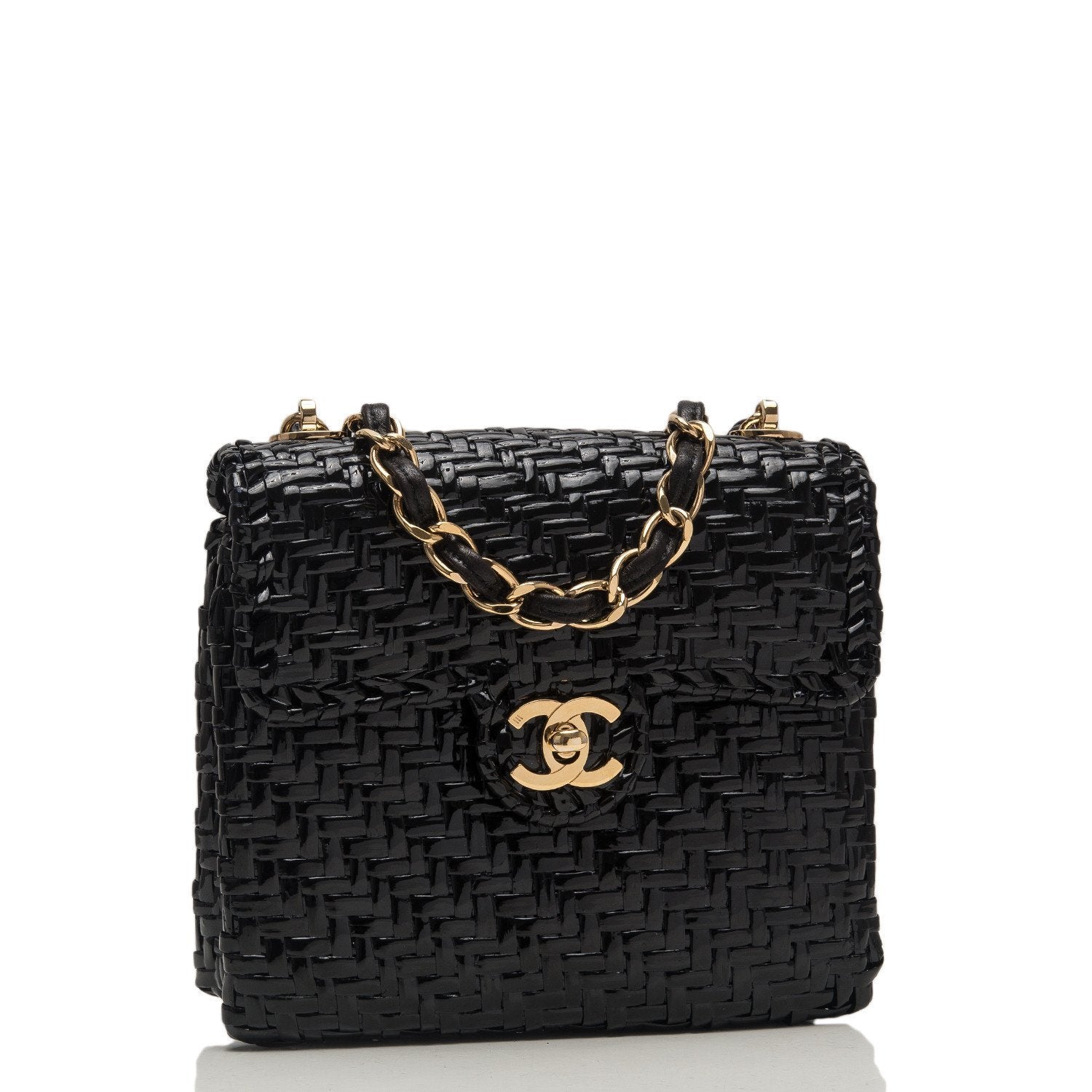 Chanel vintage glazed black wicker bag with gold tone hardware.