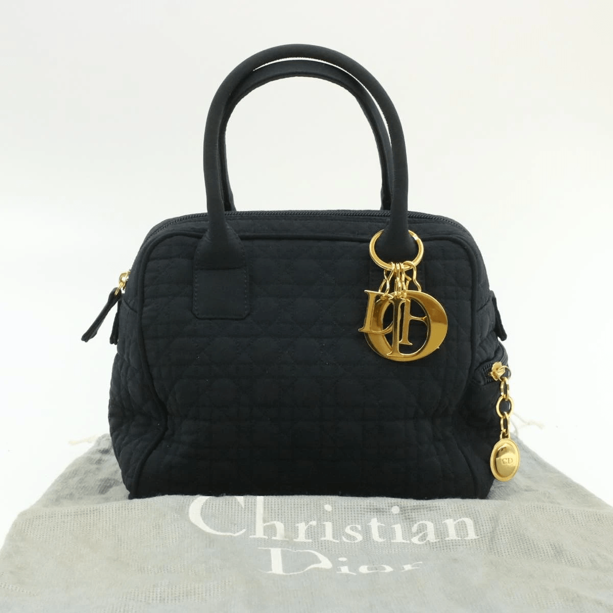 Shop this beautiful CHRISTIAN DIOR Cannage Hand Bag Black Nylon at CapNwrap today!