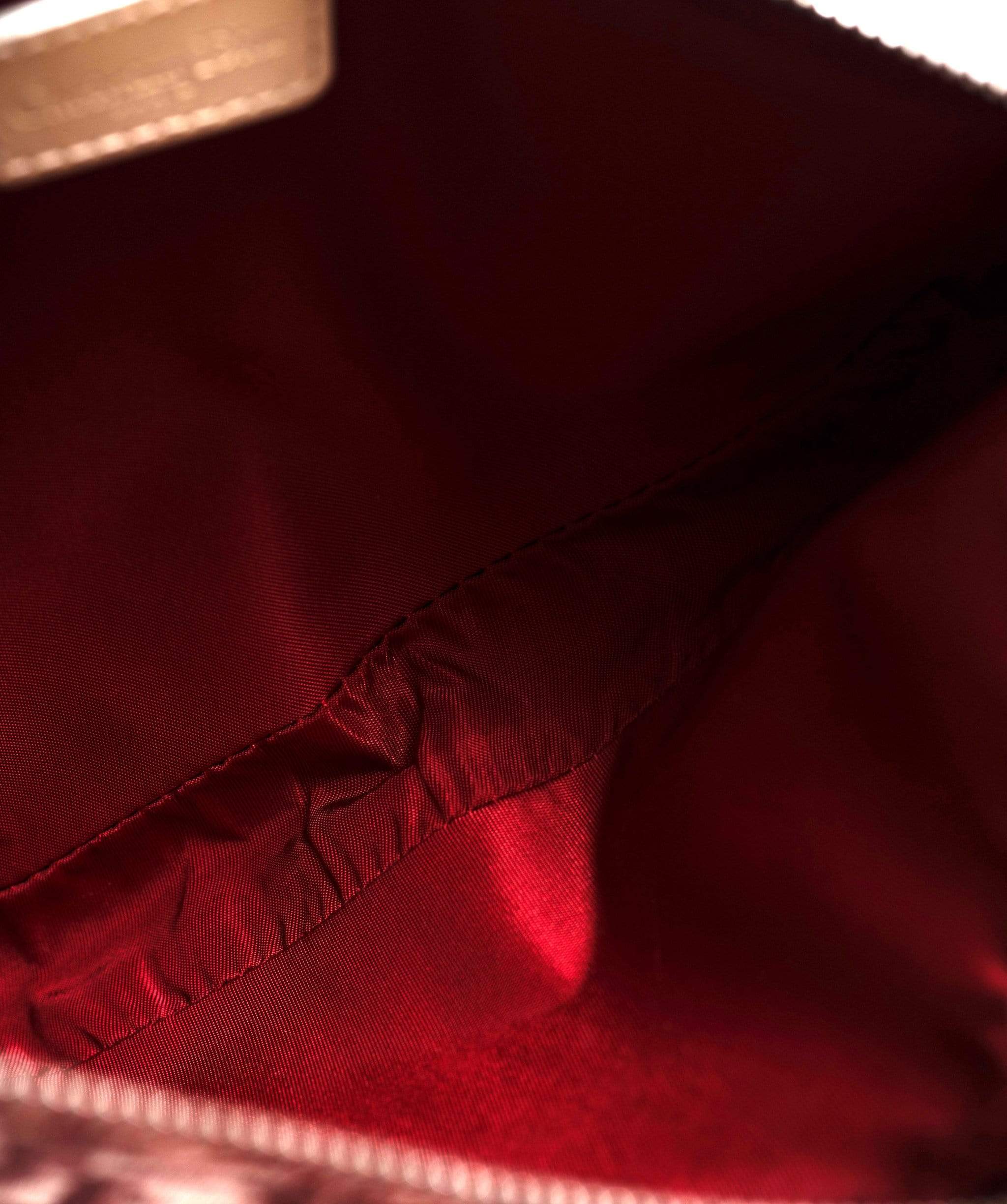 This bag is in very good condition with some signs of use. Both interior and exterior is in clean condition with light signs of wear to the leather strap. . Silver toned hardware in excellent condition, no tarnish. Bag closes securely. C.2003/04