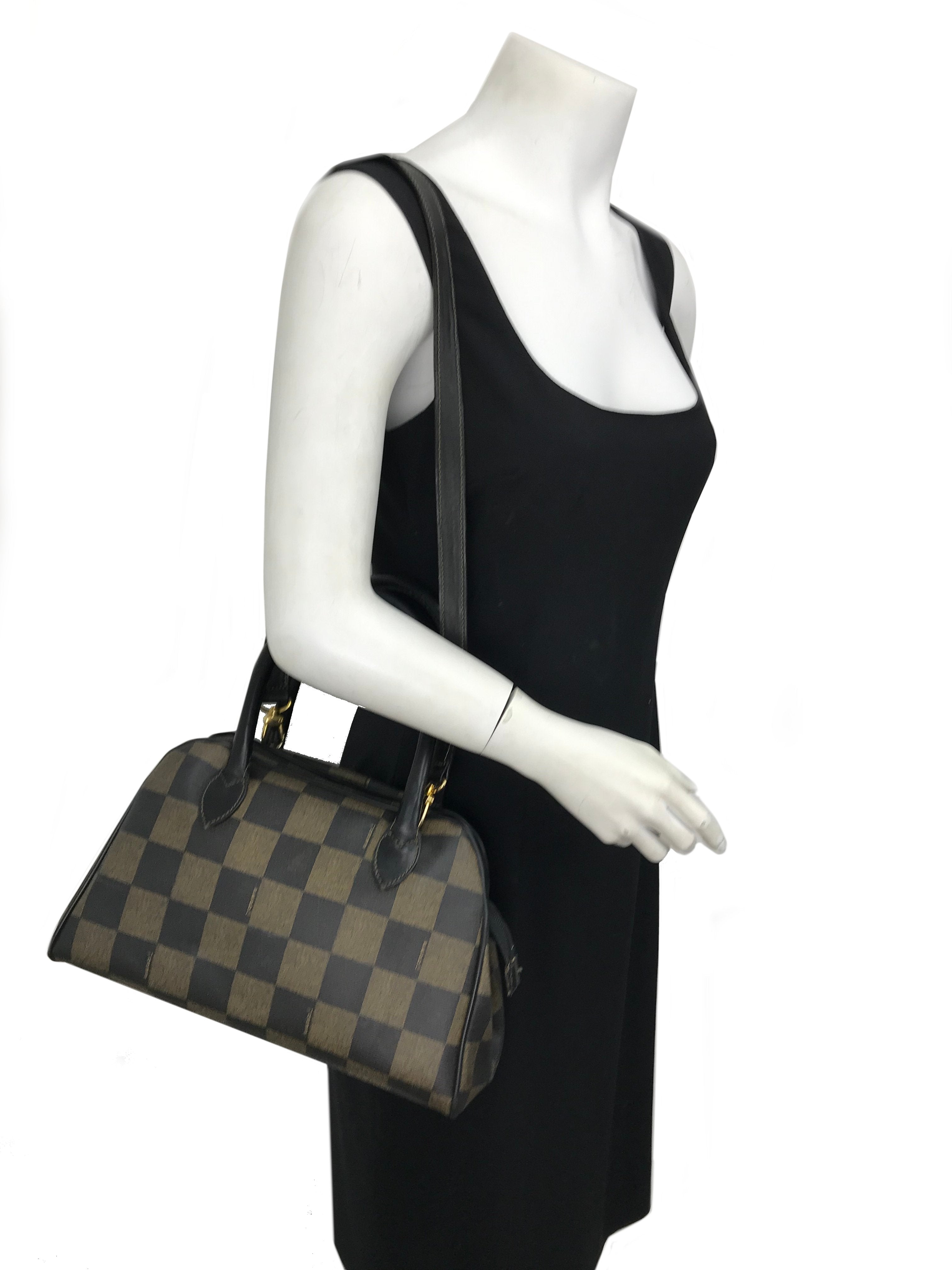 Condition: Excellent. The exterior canvas is is pristine with a few hairline surface scratches. The leather piping trim and top handles are perfect with no visible wear. The interior is overall clean with gentle wear.