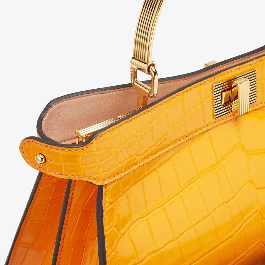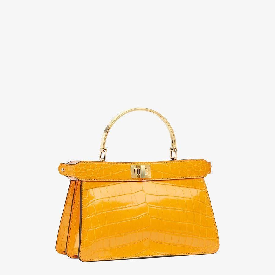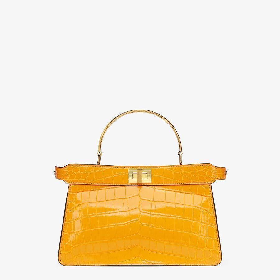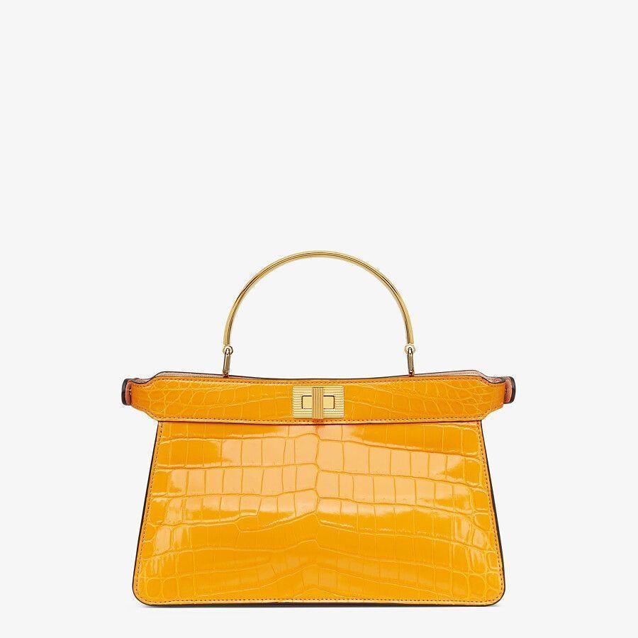 Iconic Peekaboo ISeeU horizontal design bag made of exquisite orange crocodile leather and embellished with the classic twist lock on both sides.