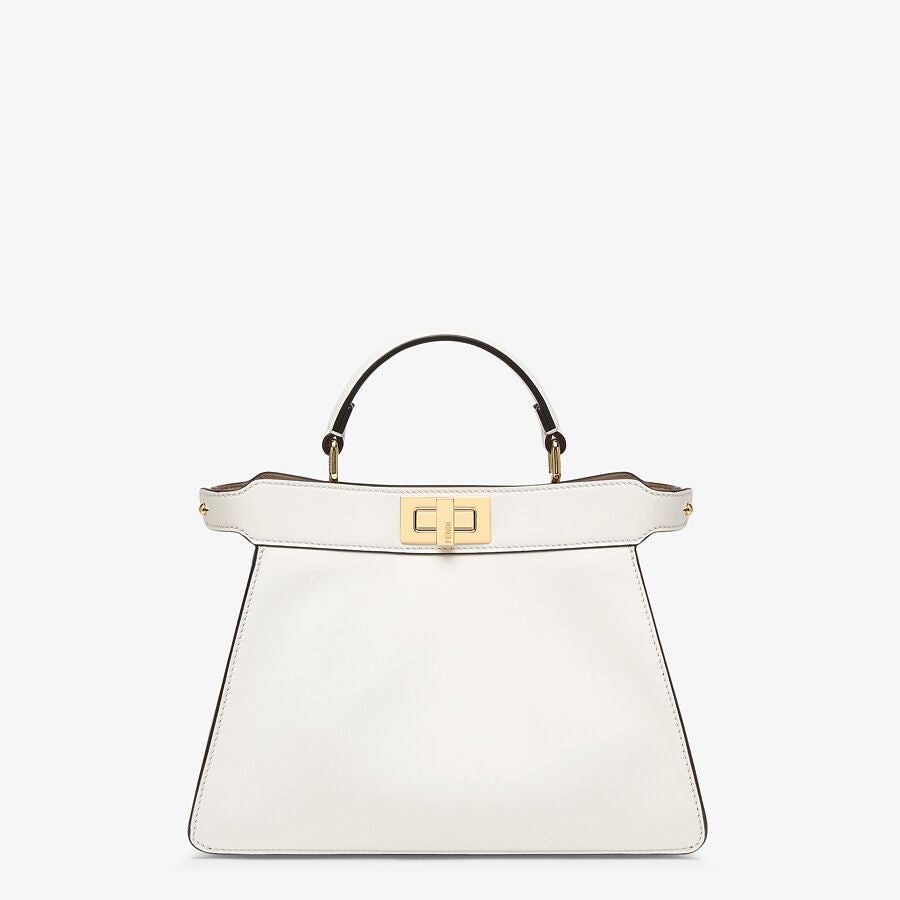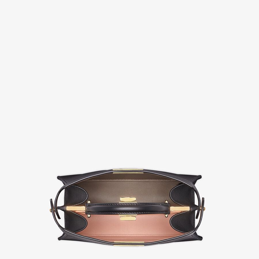 Small, iconic Peekaboo ISeeU bag made of black leather and embellished with the classic twist lock on both sides.