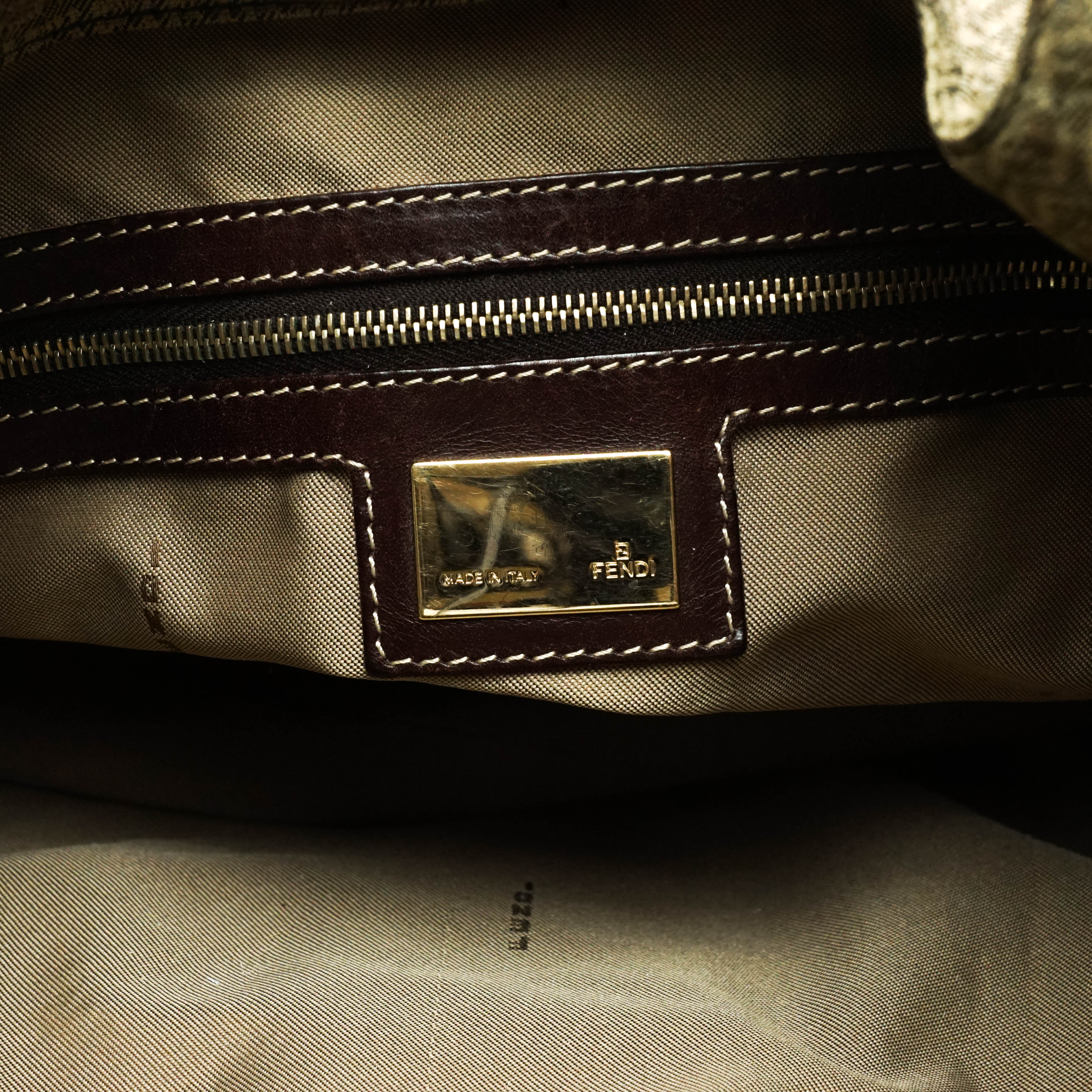 Exterior: Some rubs and stains on the leather parts, some rubs and tear on the edges and corners, some rubs and spots on the handles.