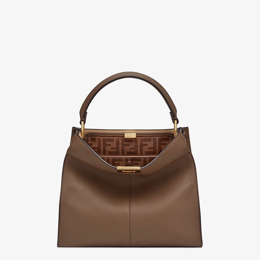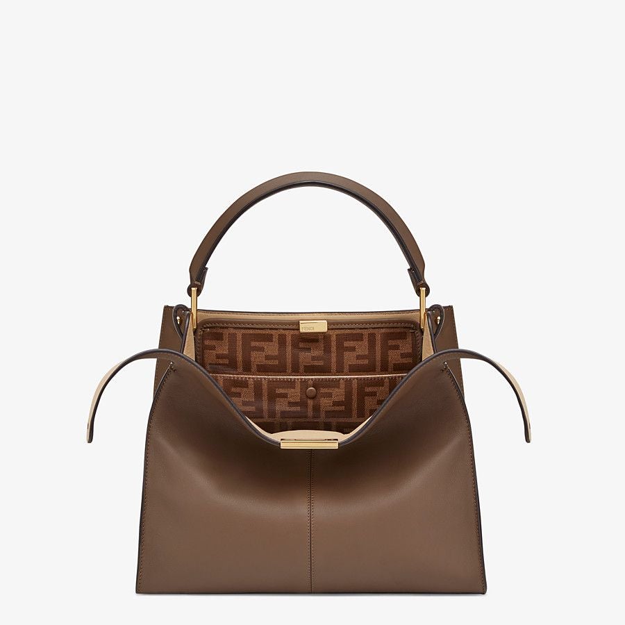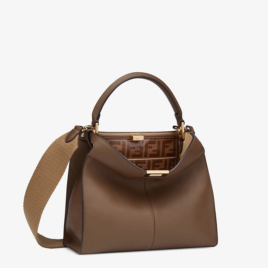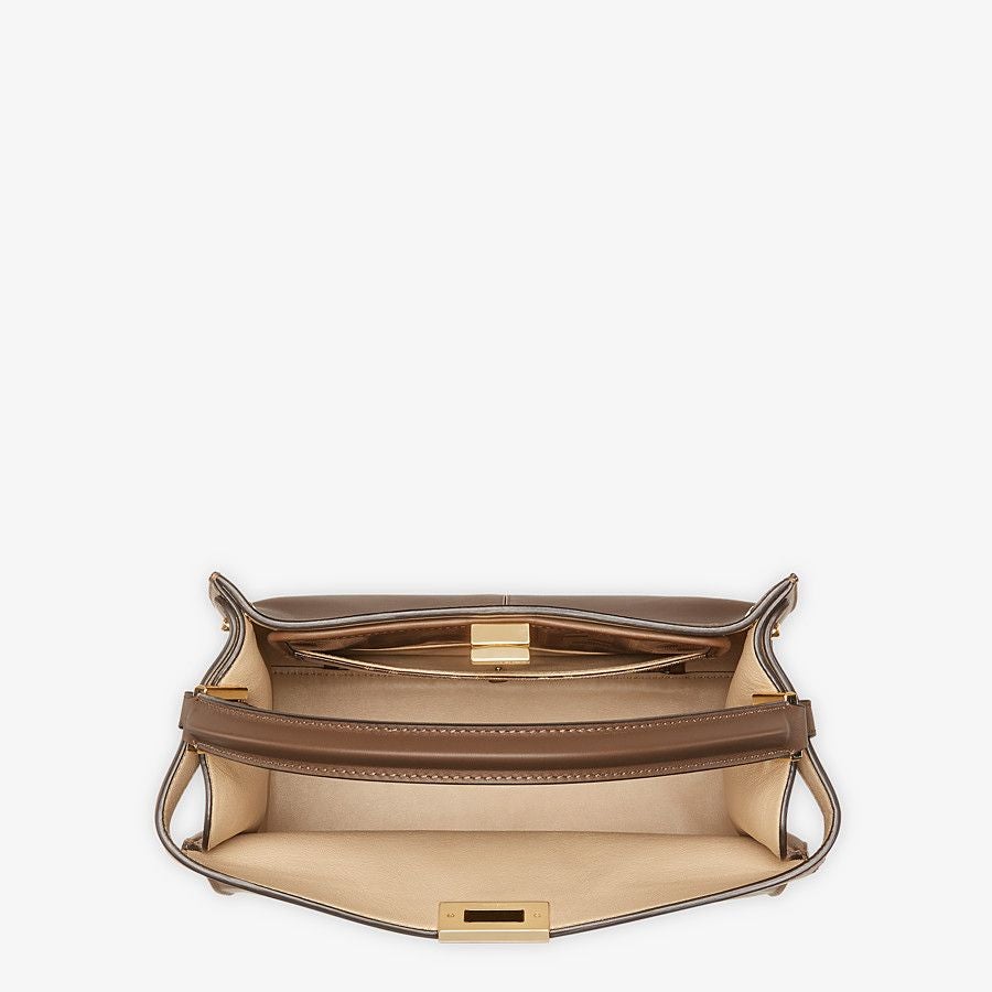 Medium Peekaboo X-lite bag made of brown leather and embellished with the classic twist lock.