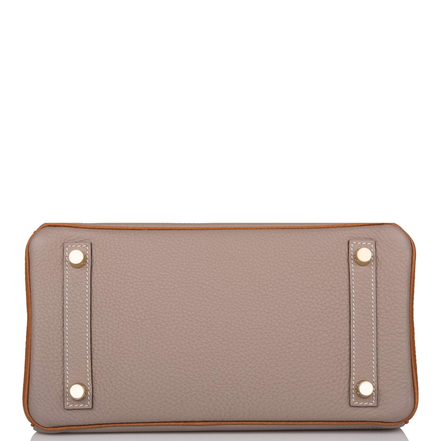 This Special Order Birkin is in Gris Asphalte and Gold togo leather with brushed gold hardware and has contrast stitching, front flap, two straps with center toggle closure, clochette with lock and two keys, and double rolled handles.