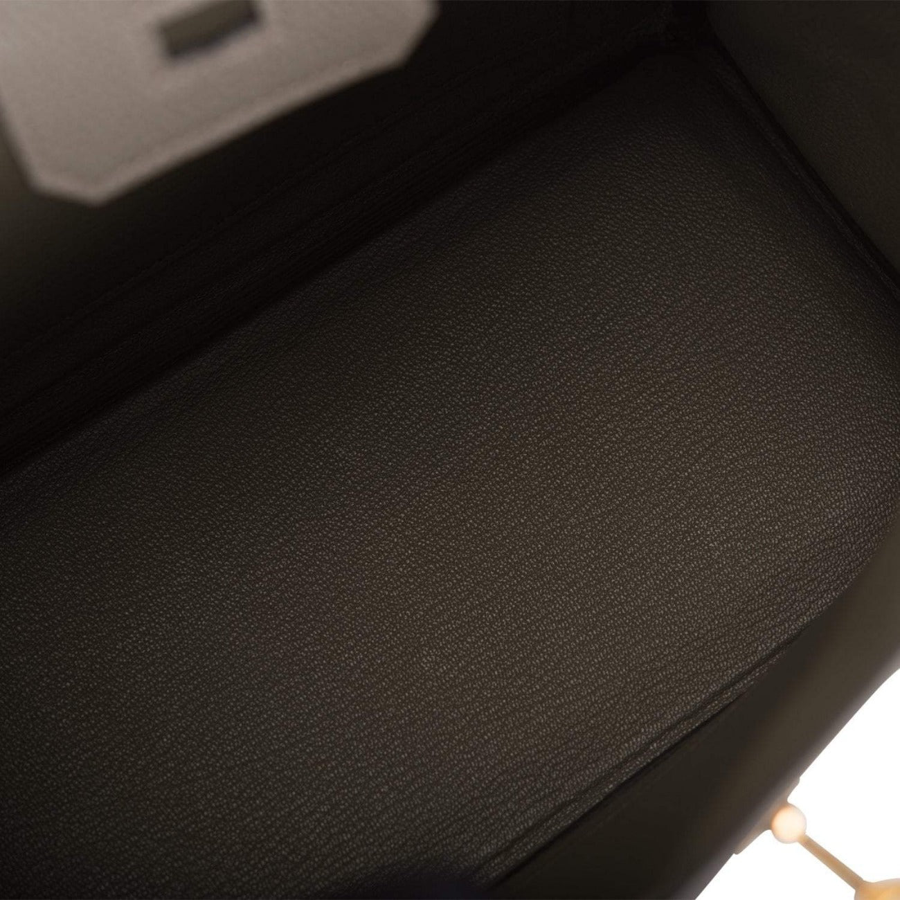 The interior is lined with Vert de Gris chevre and has one zip pocket with an Hermes engraved zipper pull and an open pocket on the opposite side.