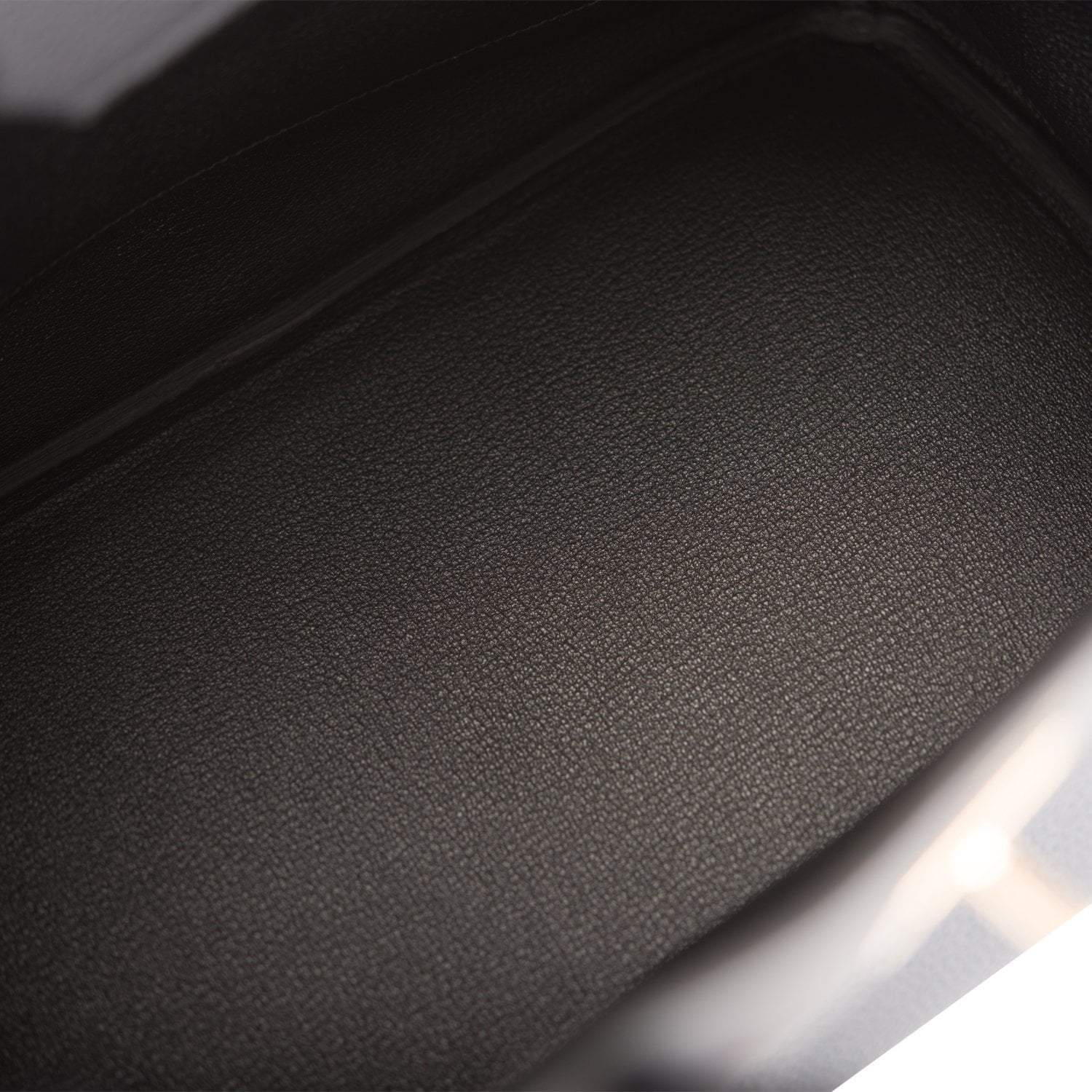 The interior is lined with black chevre and has one zip pocket with an Hermes engraved zipper pull and an open pocket on the opposite side.