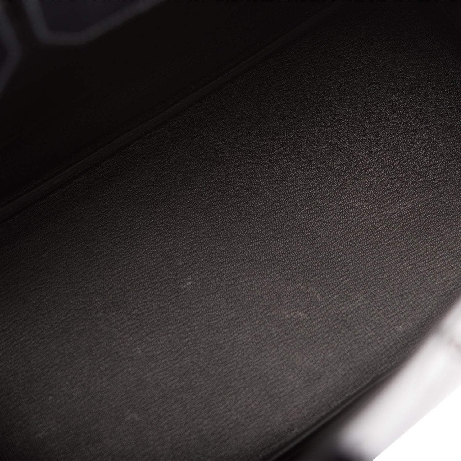 The interior is lined with black chevre and has one zip pocket with an Hermes engraved zipper pull and an open pocket on the opposite side.