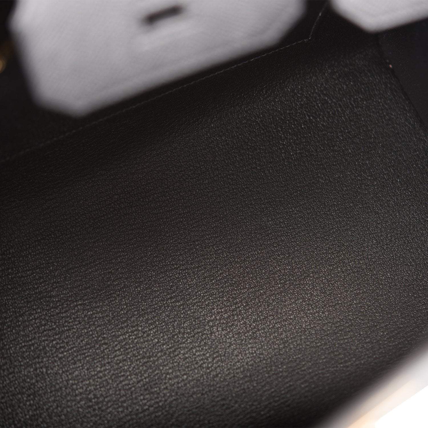 The interior is lined with black chevre and has one zip pocket with an Hermes engraved zipper pull and an open pocket on the opposite side.