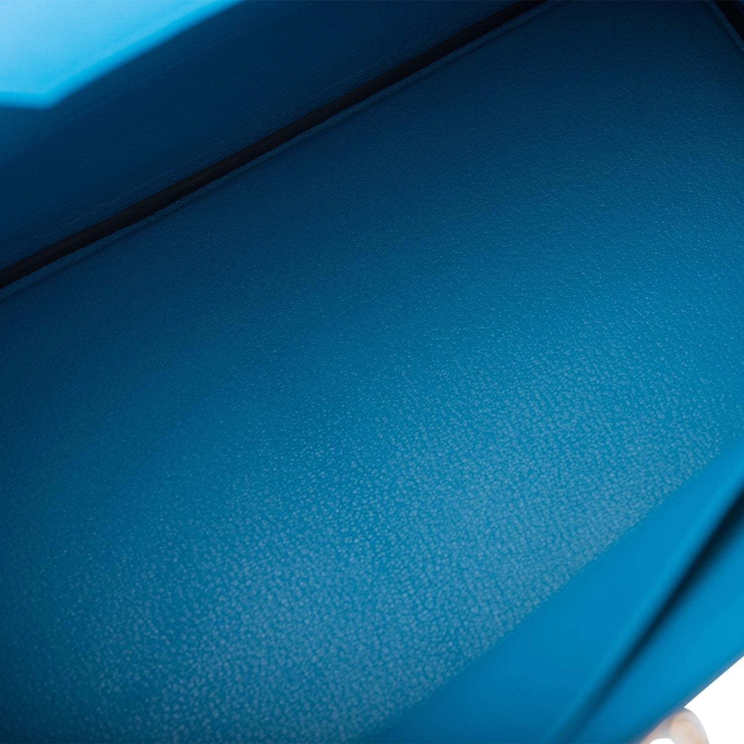 The interior is lined with Bleu Frida chevre and has one zip pocket with an Hermes engraved zipper pull and an open pocket on the opposite side.