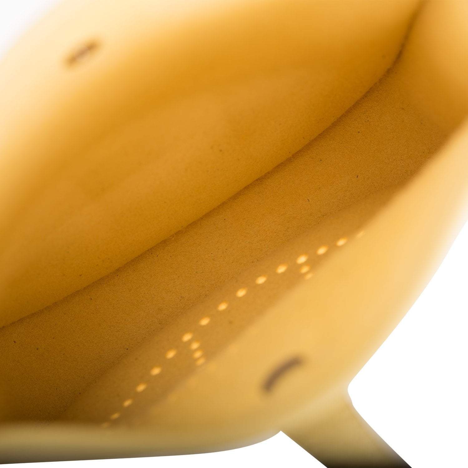 This Evelyne TPM is in Jaune Poussin clemence leather with palladium hardware and features tonal stitching stitching, pull tab top closure and a white removable canvas and leather shoulder/crossbody strap.