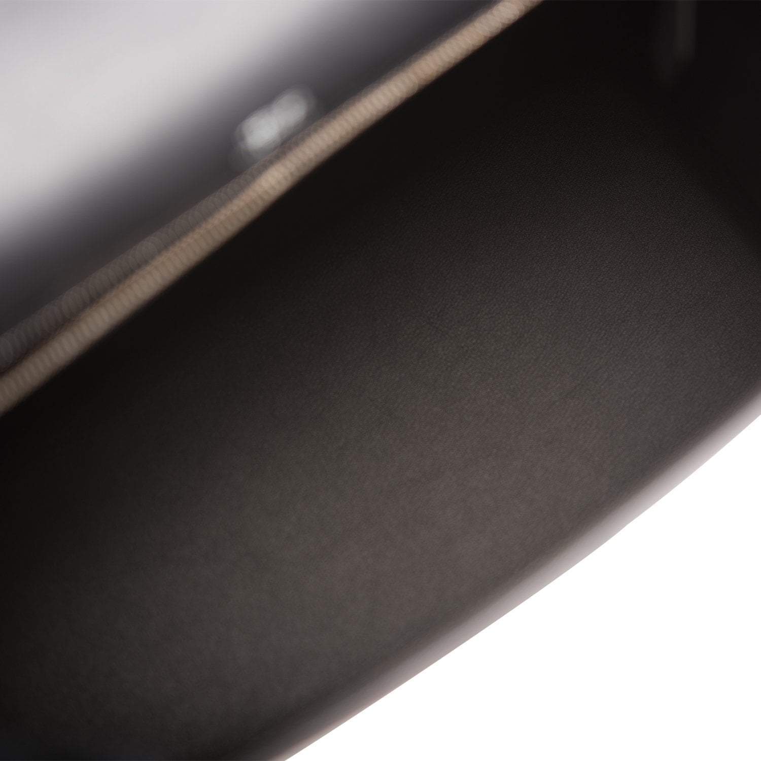 The interior is lined with black swift and has one zip pocket with an Hermes engraved pull and two open pockets on the opposite side.