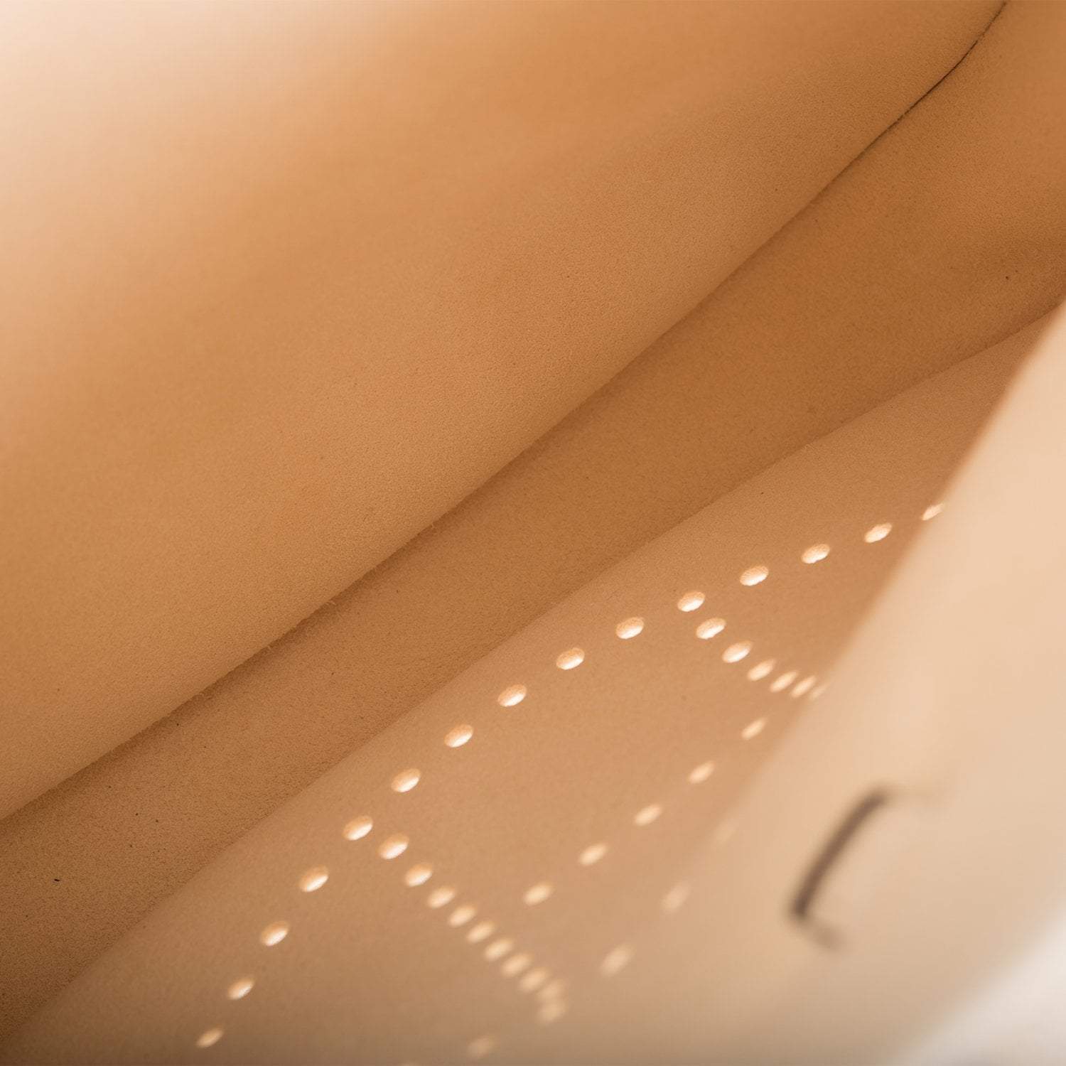 This Evelyne is in Nata clemence leather with palladium hardware and has tonal stitching, pull tab top closure and nata removable canvas and leather shoulder/crossbody strap.
