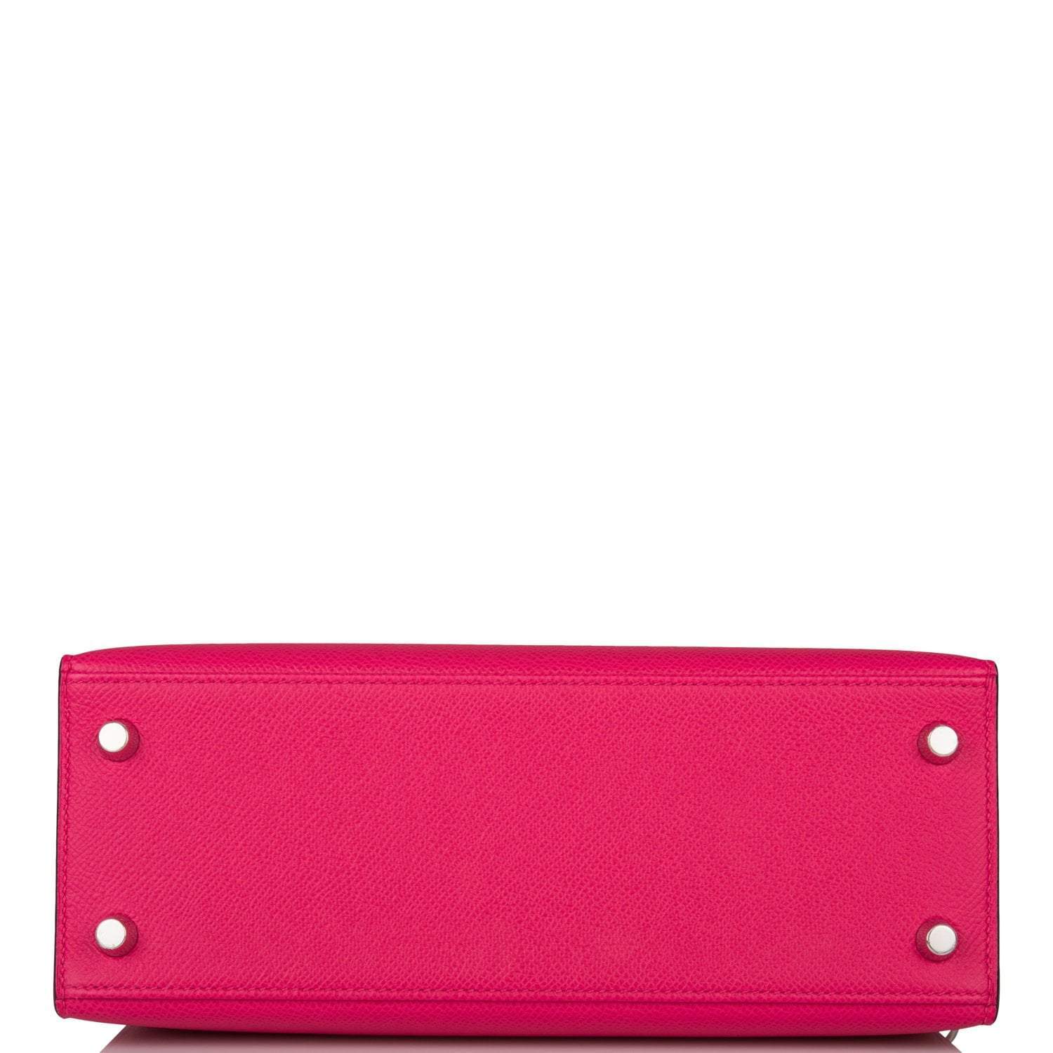 This Kelly, in the Sellier style, is in Rose Mexico epsom leather with palladium hardware and has tonal stitching, two straps with front toggle closure, clochette with lock and two keys, single rolled handle and removable shoulder strap.
