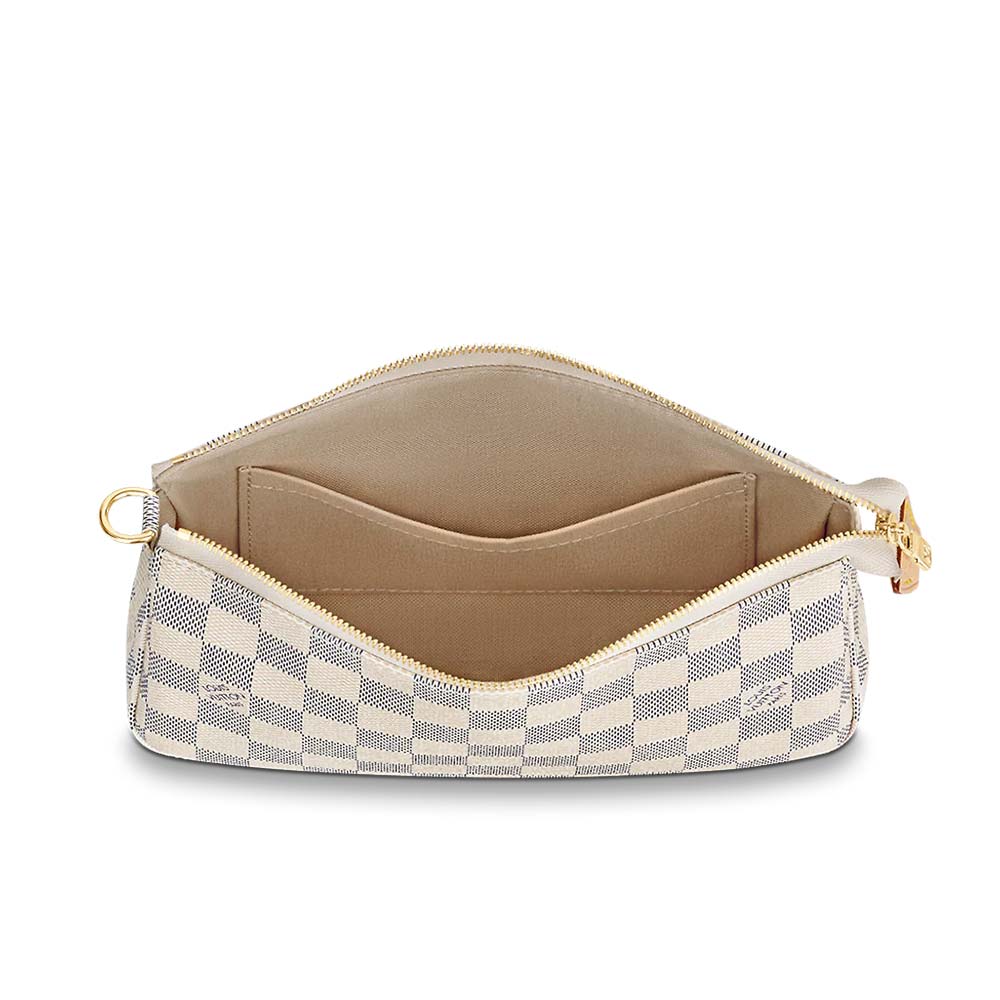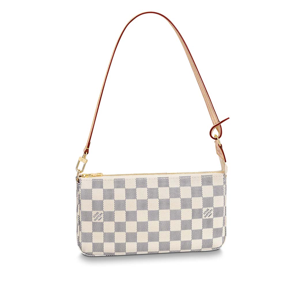 Damier Azur canvas gives the iconic shape of the Pochette Accessoires a bright, alluring appeal. Slightly larger than the original design, it can easily accommodate a Zippy wallet.