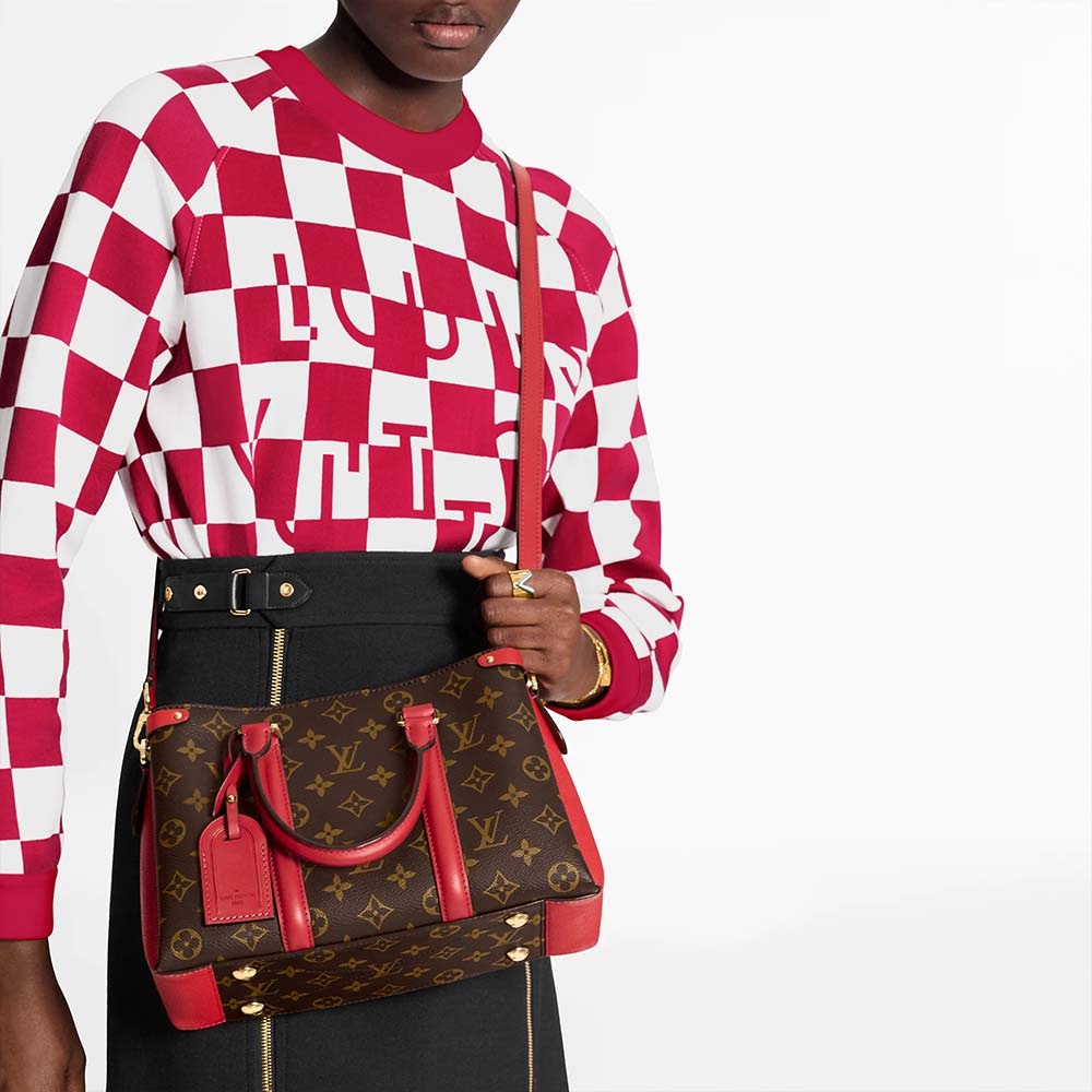 The fashionably petite Soufflot BB is crafted from supple Monogram canvas with gussets and trim of rich, coloured leather and a coordinating coloured lining. With its vertical bands and name tag, it nods to the Keepall, a House icon. Refined and timeless it can be carried cross-body, on the shoulder, by hand or in the crook of the arm.