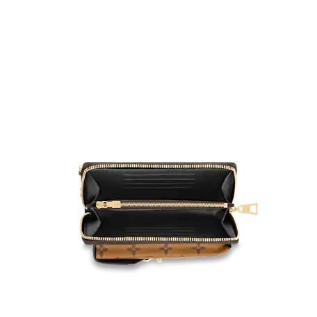 The Vertical Zippy Wallet Métis is a sleek hybrid wallet crafted from a mix of Monogram and Monogram Reverse coated canvas. The outside pocket fits the latest smartphone models, while the interior is organized like a traditional small leather good, with multiple pockets and card slots. This stylish and versatile piece can be carried cross-body, thanks to its removable golden chain, or slipped into a large bag.