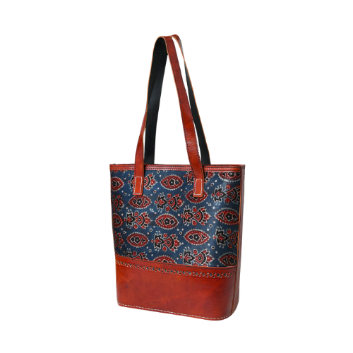 The Artisan Leather Tote Bag is a statement piece that blends tradition with modern design. Featuring a unique indigo block-print inspired pattern paired with brown leather, this tote exudes artistic charm while offering everyday practicality. Its handcrafted details and contrast stitching highlight the craftsmanship, making it an ideal choice for those who appreciate bags that are both functional and expressive. Perfect for work, travel, or casual outings, this tote brings a touch of culture and individuality to your collection.