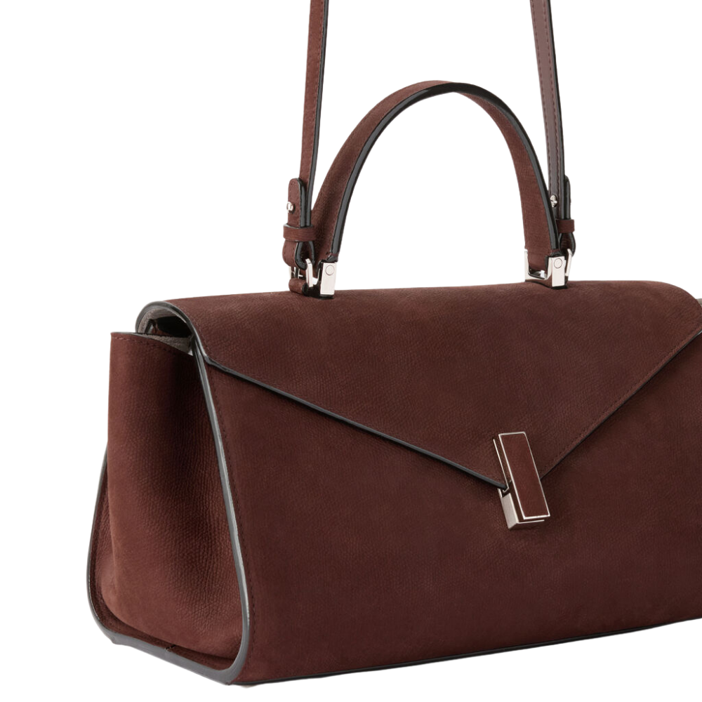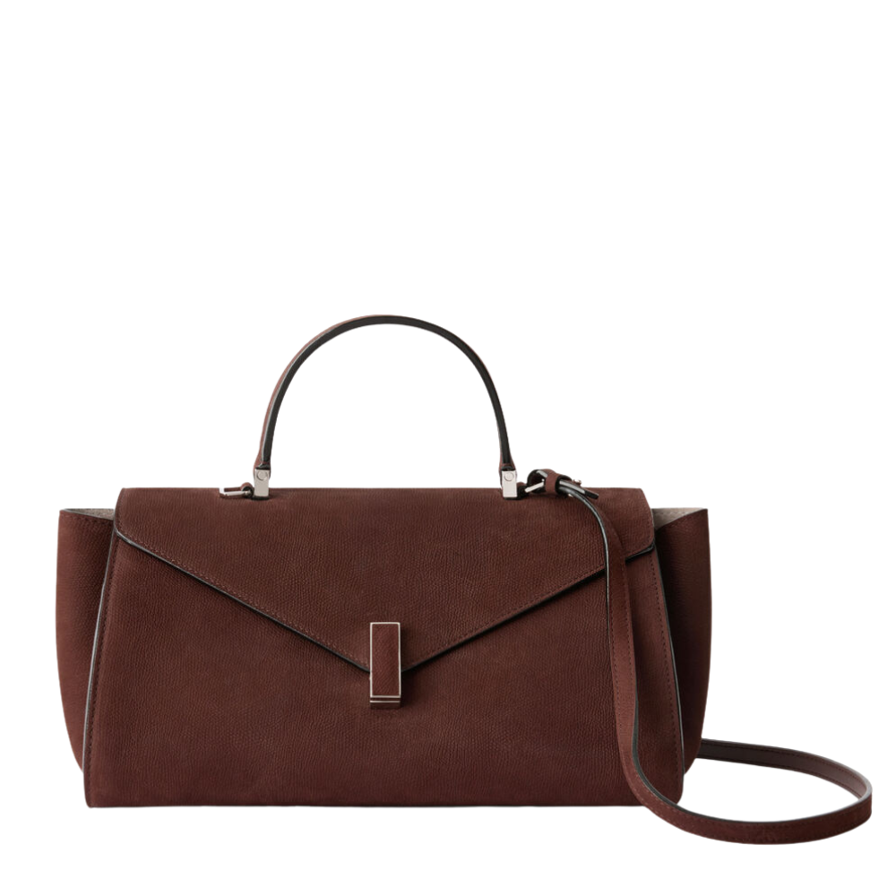 Crafted from Mirevia’s refined embossed Senso leather in an elegant chocolate brown tone, the Iside Editor presents a sleek elongated silhouette — offering a contemporary geometric interpretation of the classic Iside line. Its softly structured form adapts seamlessly to daily use while maintaining its polished shape.