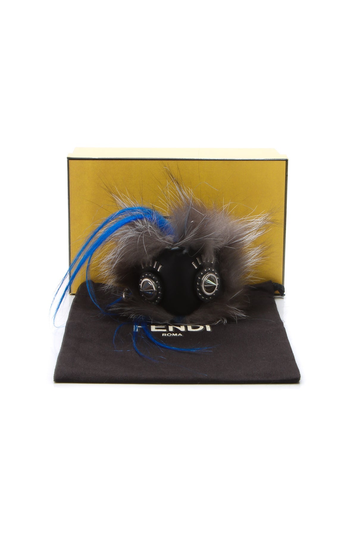 This authentic Fendi Monster Bug Bag Charm is the bold accessory your current collection craves. In this unique piece, calfskin leather with spiked monster eyes surrounded by soft fur come together for the perfect character finish. Attached to keys and bags alike, this little monster gets attention no matter where it is.