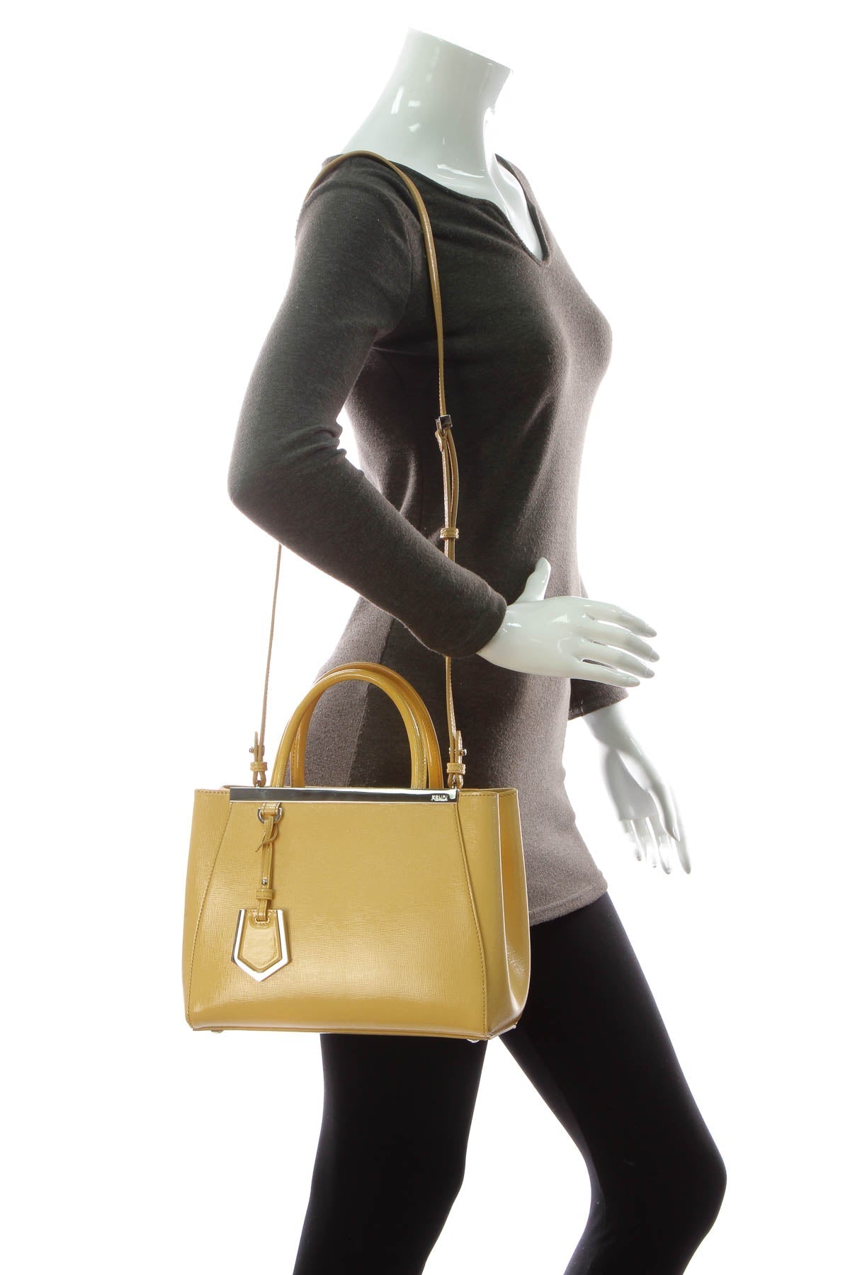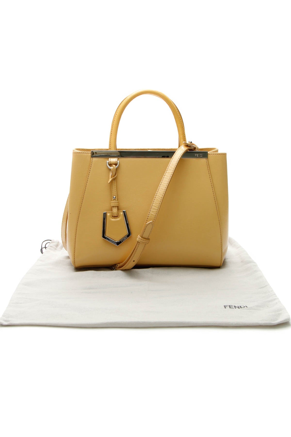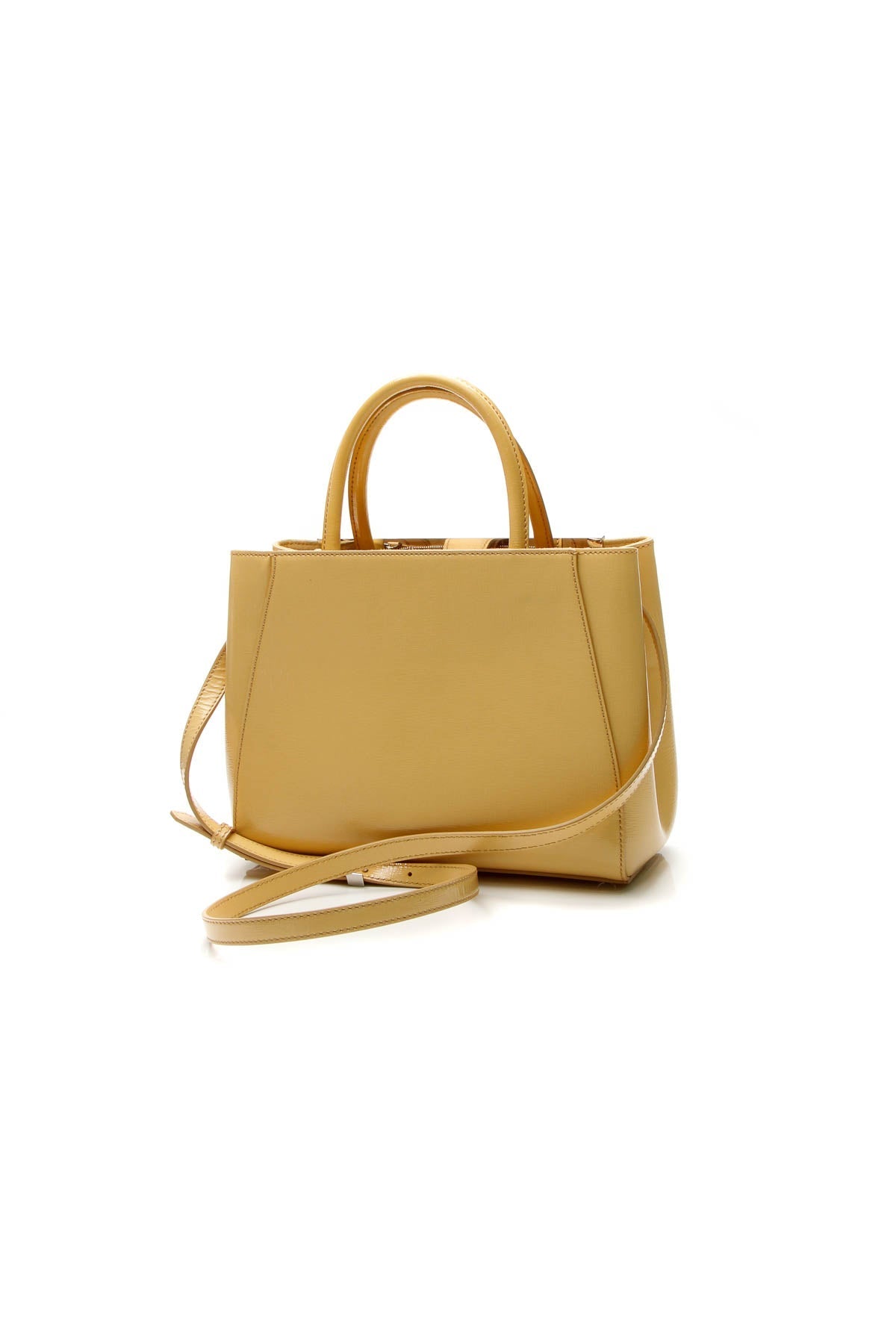 Infuse a pop of color into your daily ensemble with this authentic Fendi Petit 2Jours Elite tote. Designed for the modern-day fashionista unafraid to stand out, the yellow patent leather and silver-tone details are guaranteed to steal the spotlight. Wear it with a neutral ensemble to bring a little fun to everyday fabulosity.