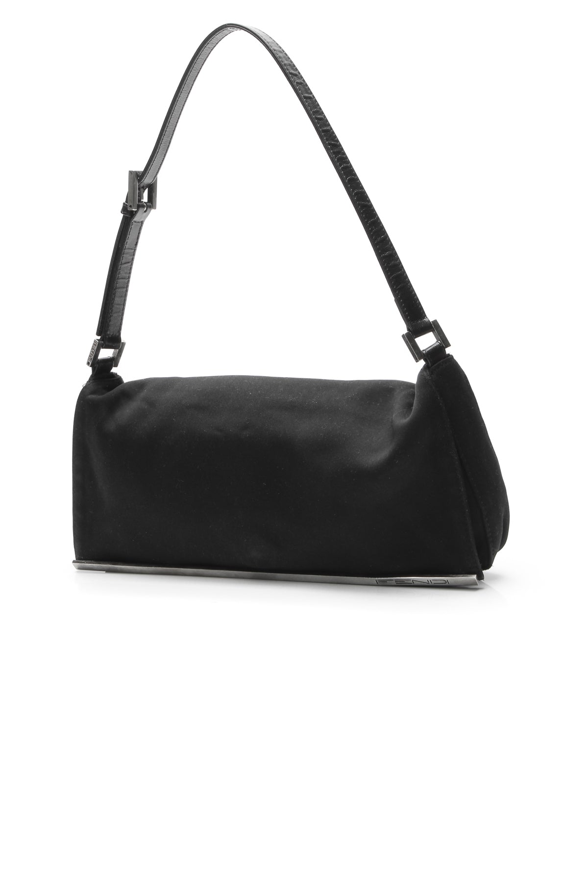 A spunky little addition to casual attire, this authentic Fendi pochette bag is the perfect match! The dynamic black jersey shows off the signature Fendi style with a classic silhouette. This bag can be used day or night for a versatile and feisty look!