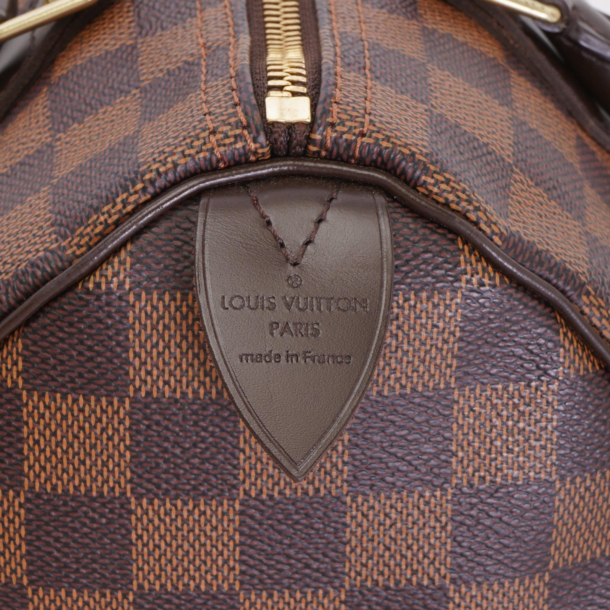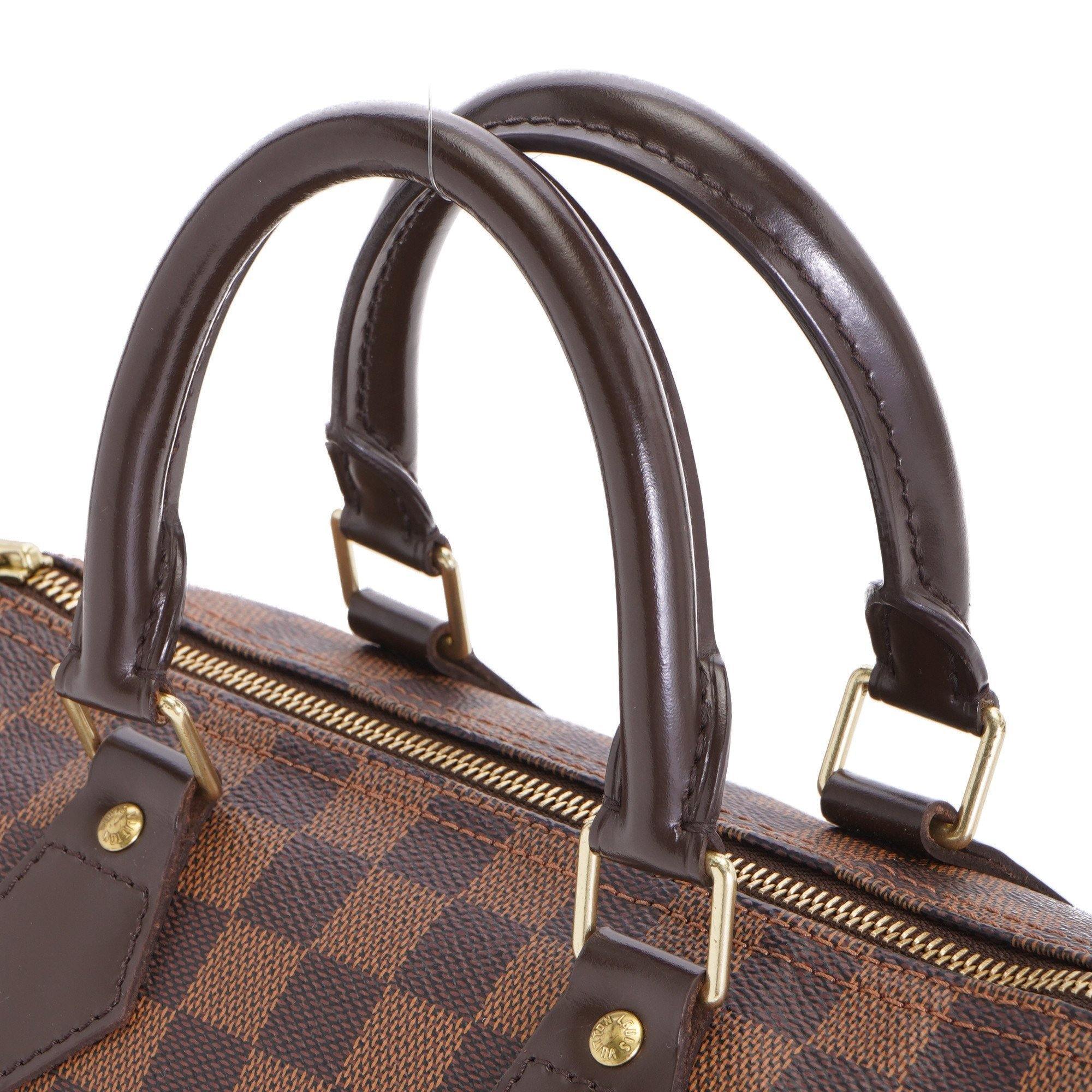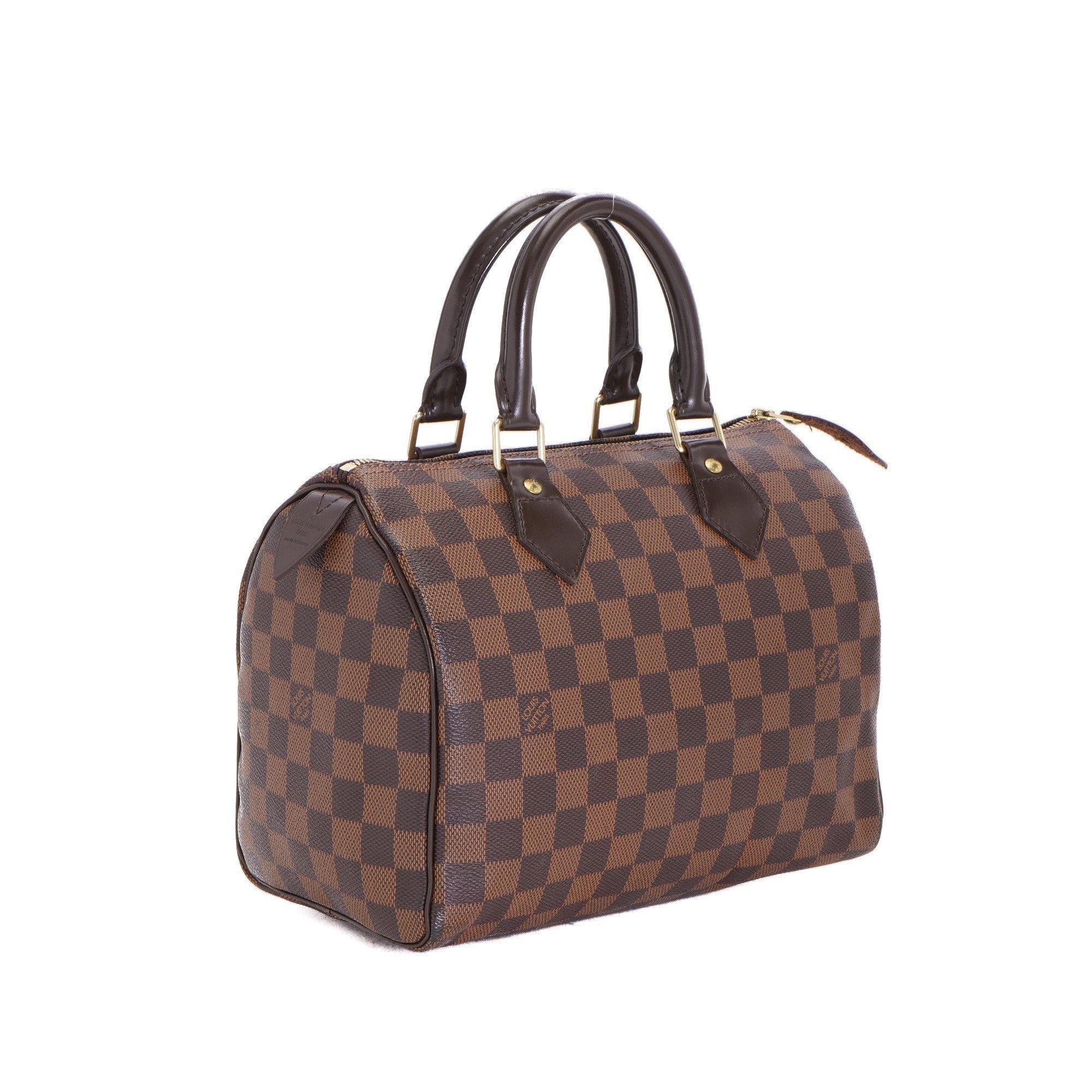 The Speedy Bandoulière 25 in graphic Damier Ebene canvas is an ideal city bag for every day. Originally created for travelers in the 1930s – the name refers to the era’s rapid transit – every feature of the Speedy’s design is iconic, from its unmistakable shape to the rolled leather handles, engraved padlock and detachable strap.