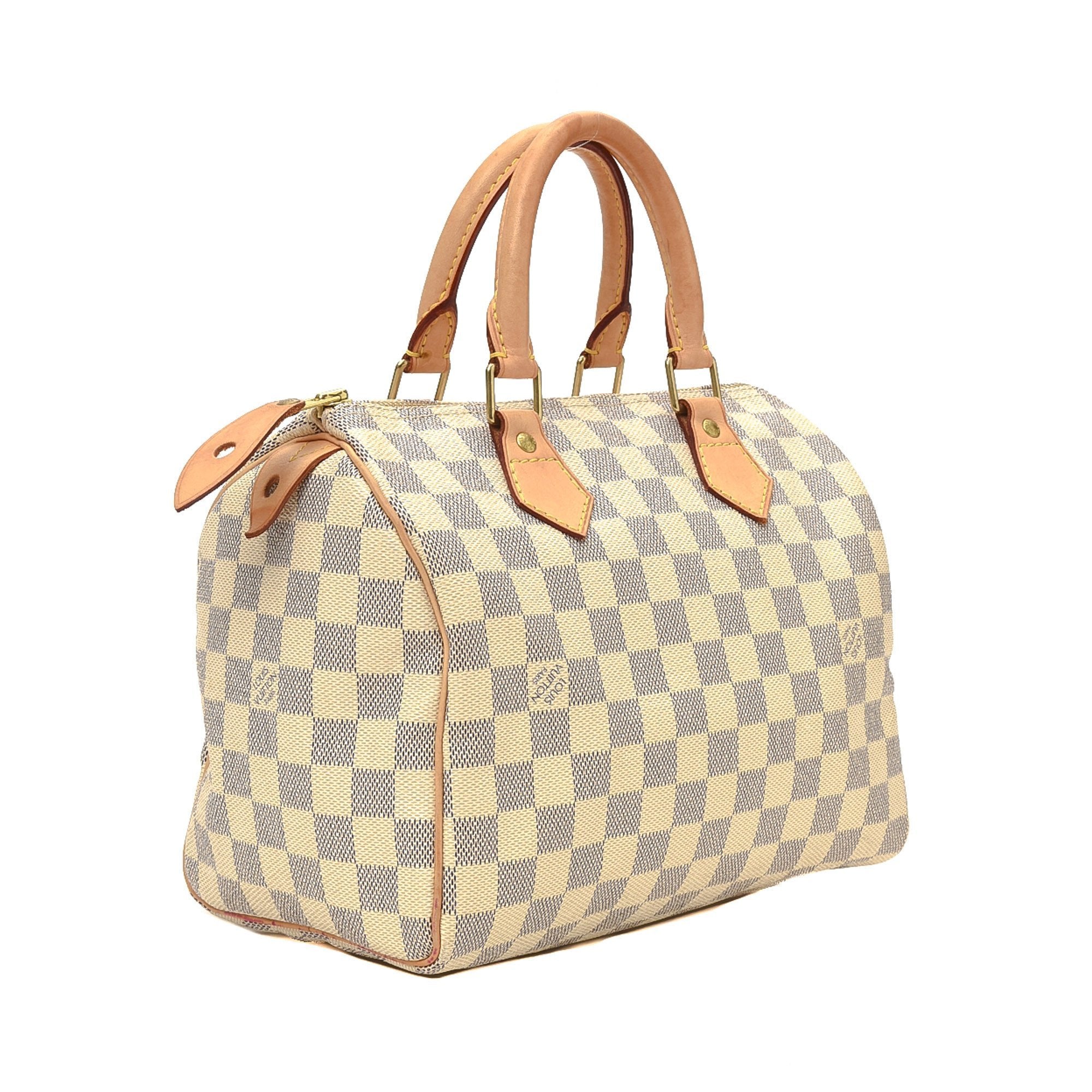 The Speedy Bandoulière 25 in graphic Damier Ebene canvas is an ideal city bag for every day. Originally created for travelers in the 1930s – the name refers to the era’s rapid transit – every feature of the Speedy’s design is iconic, from its unmistakable shape to the rolled leather handles, engraved padlock and detachable strap.