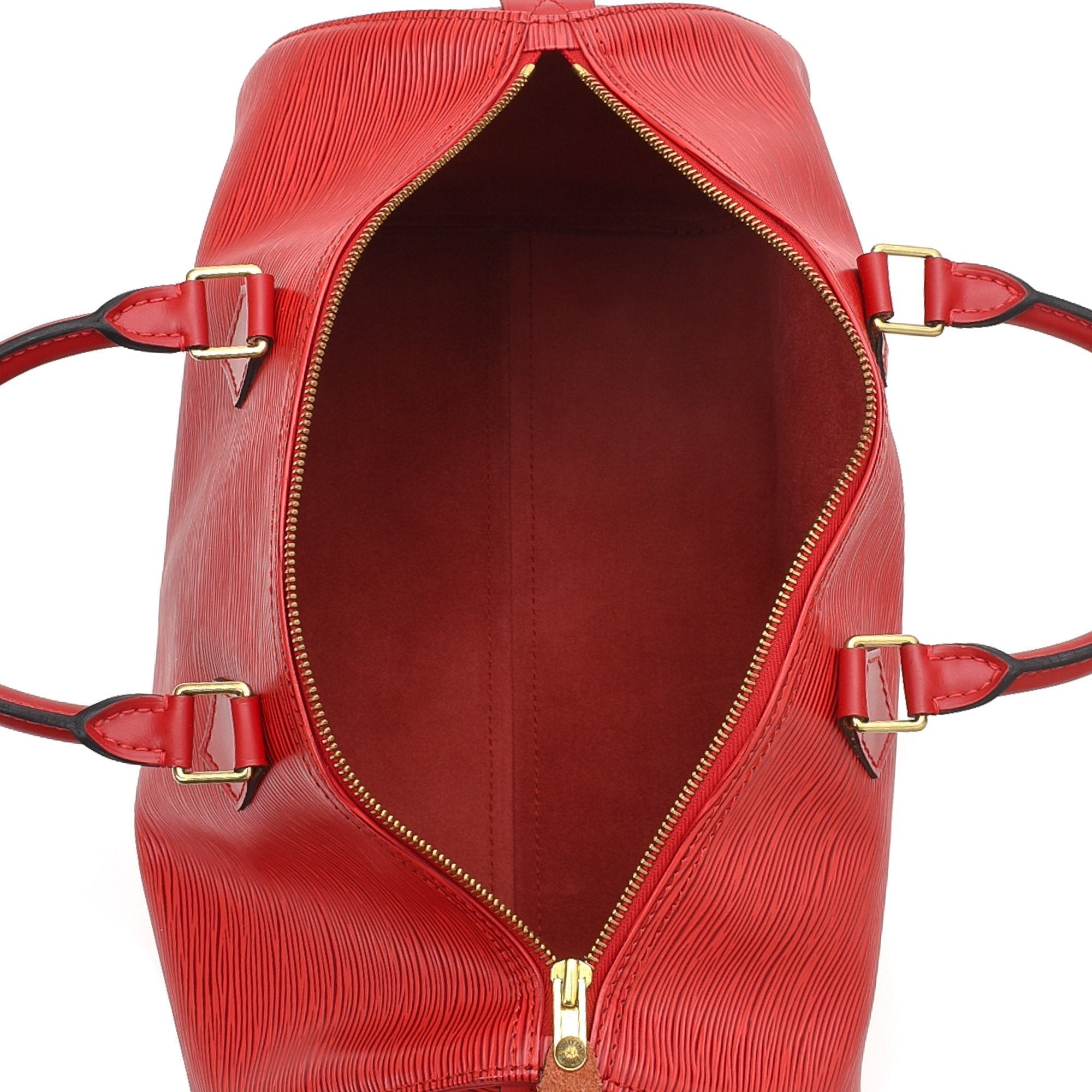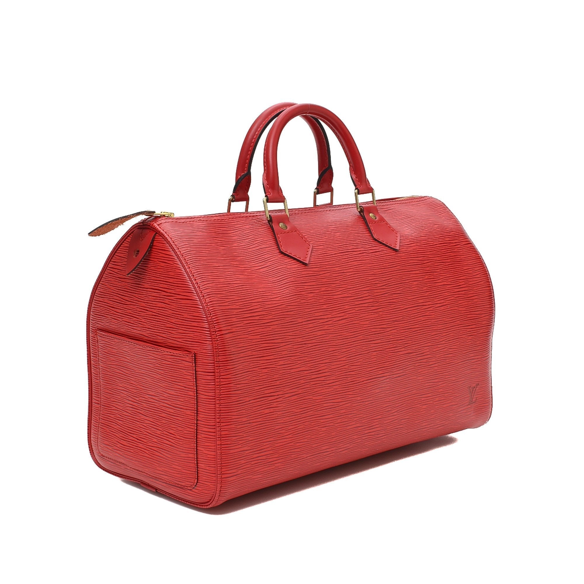 capnwrap guarantees the authenticity of this vintage Louis Vuitton Speedy 35 handbag. This beautiful purse was crafted in epi leather in castilian red.