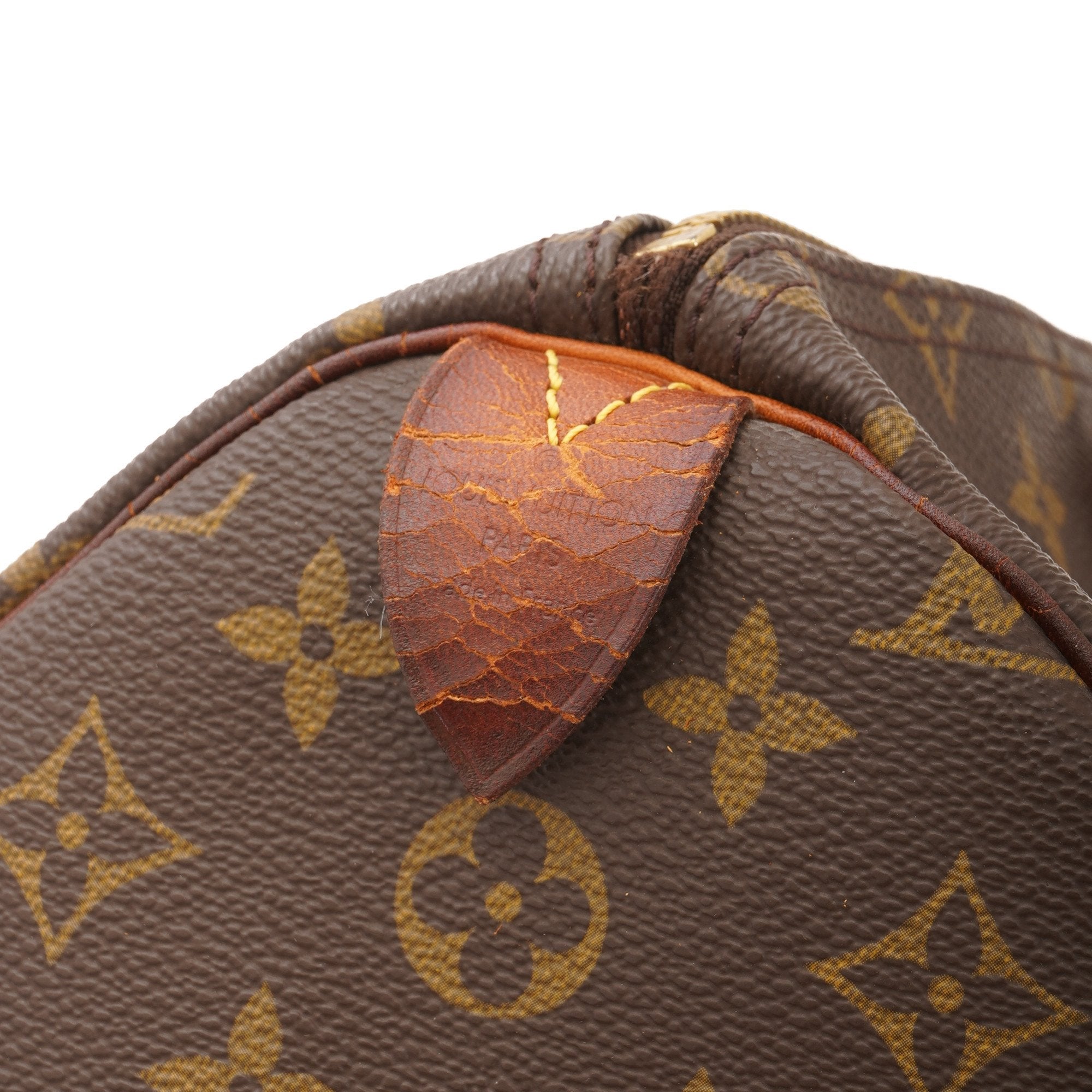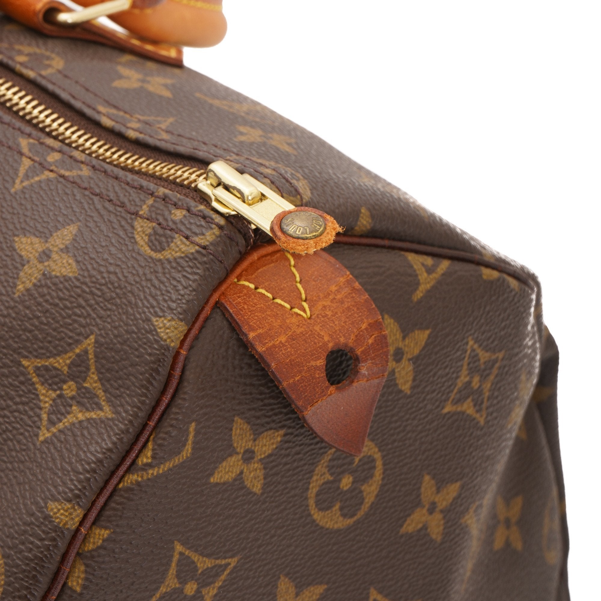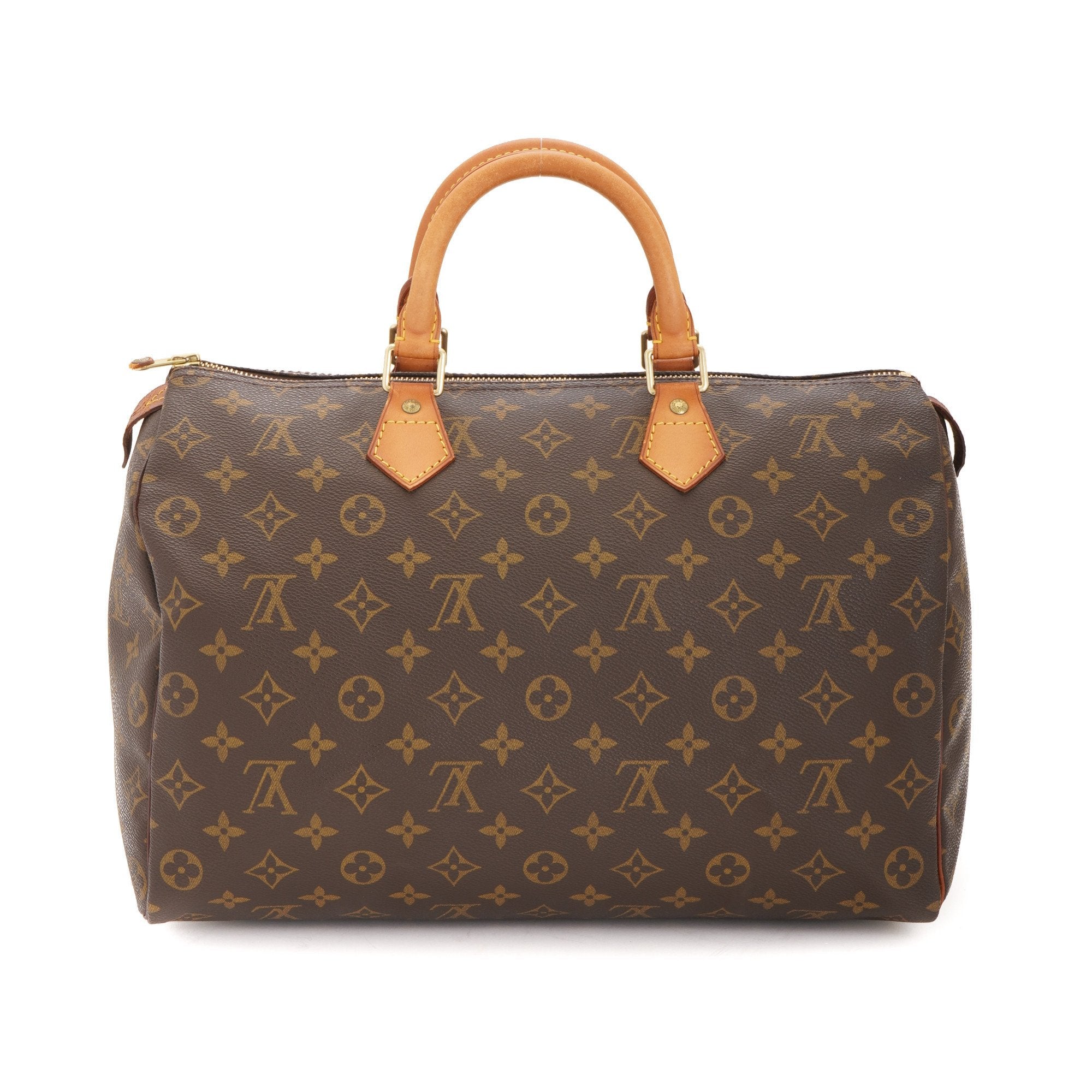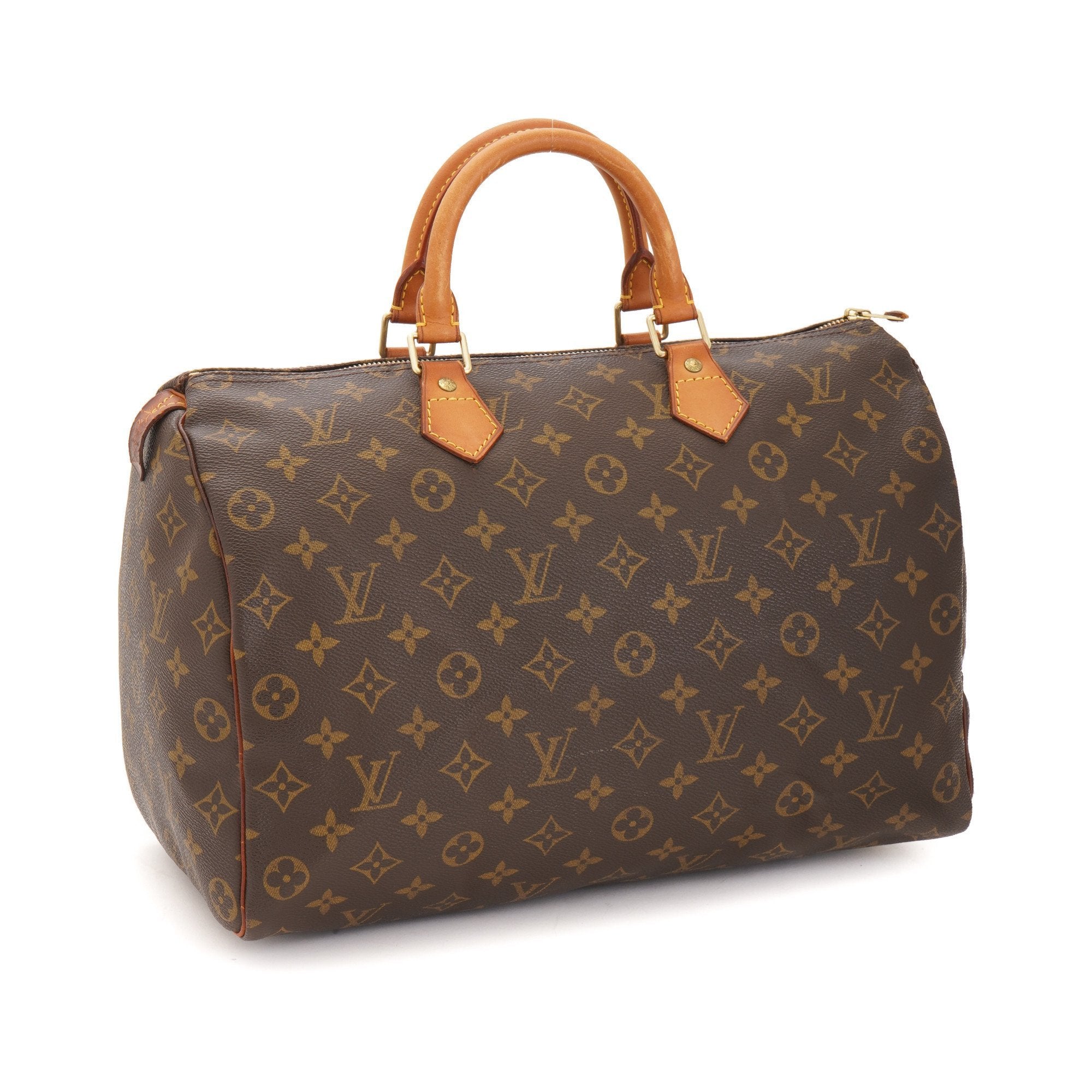 capnwrap guarantees this is an authentic vintage Louis Vuitton Speedy 35 handbag. This elegant handbag was crafted in monogram coated canvas in brown.