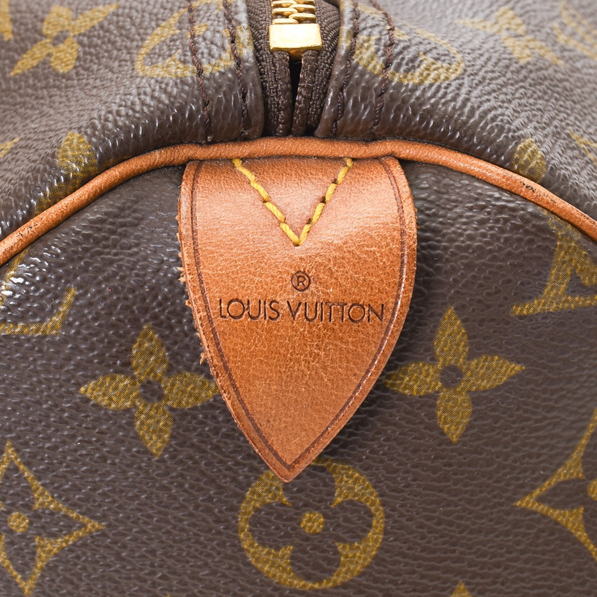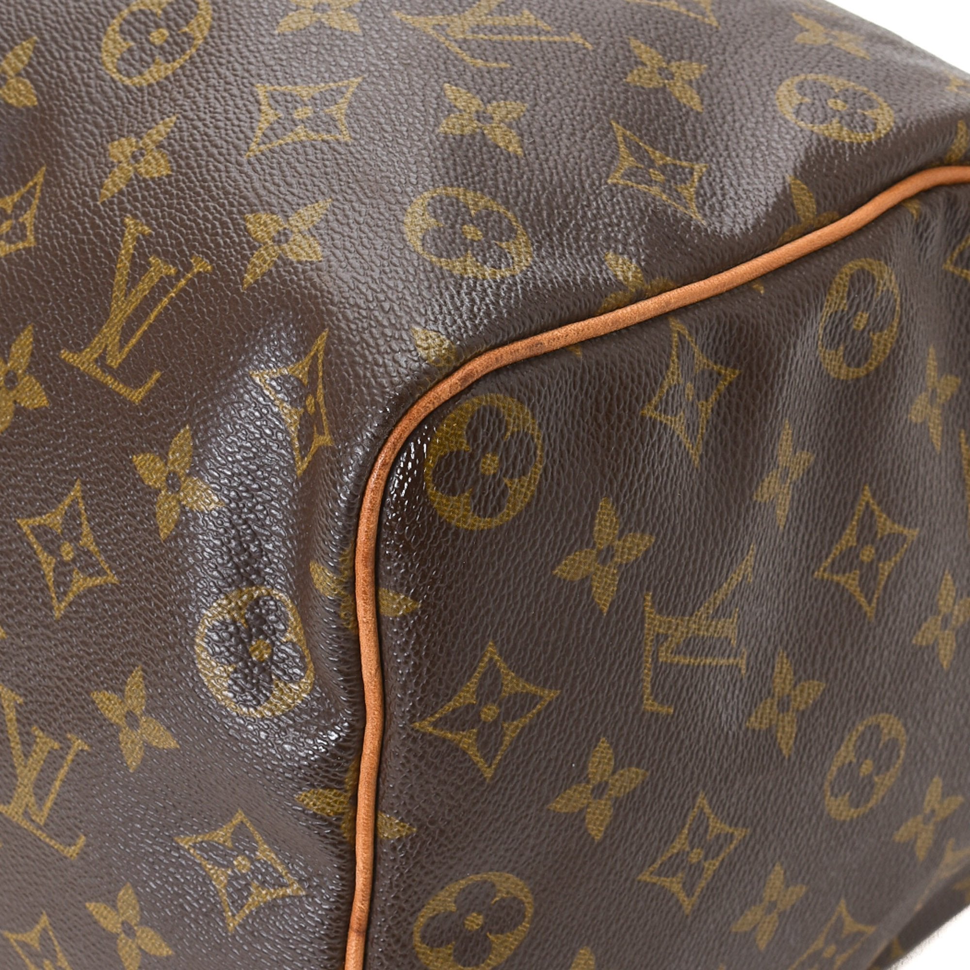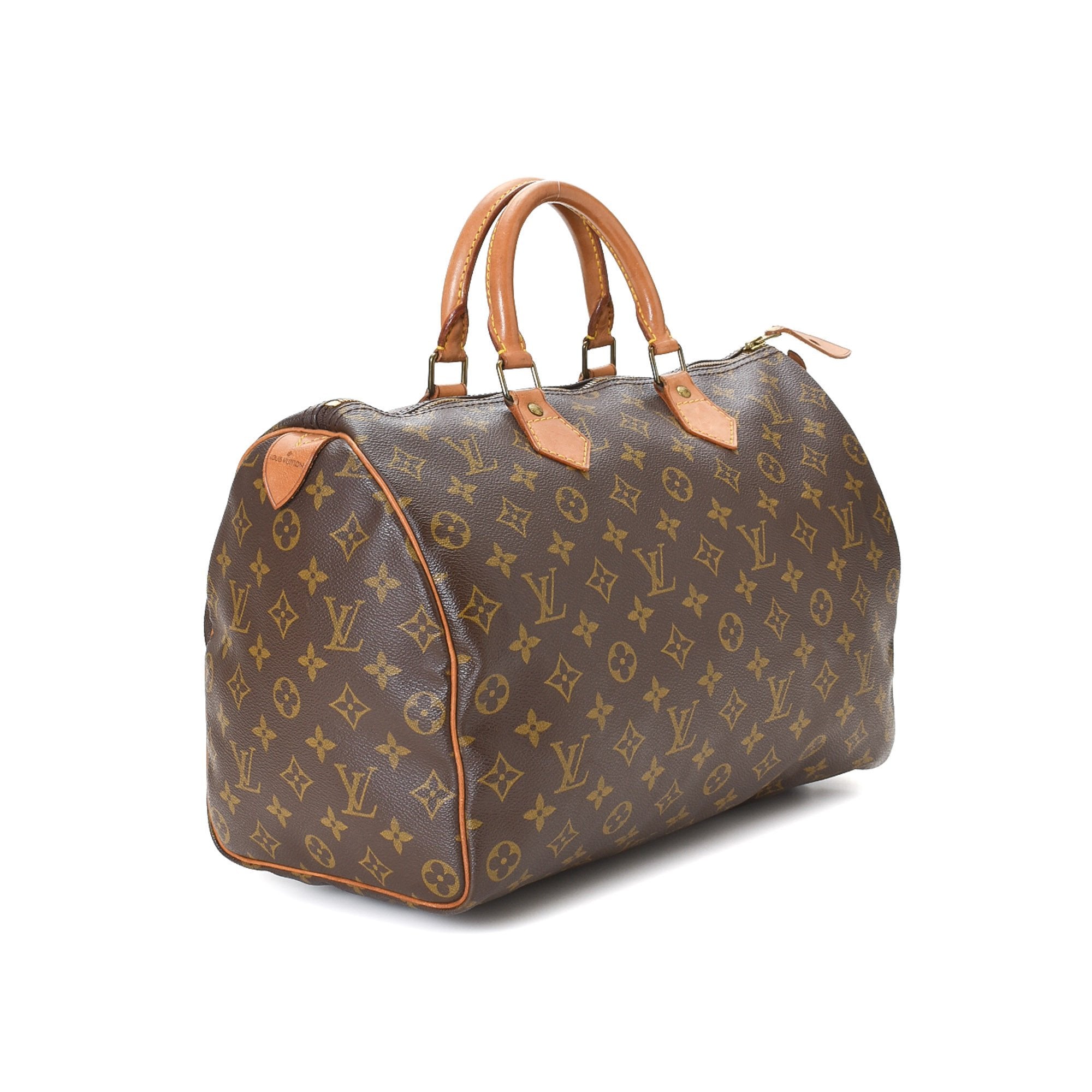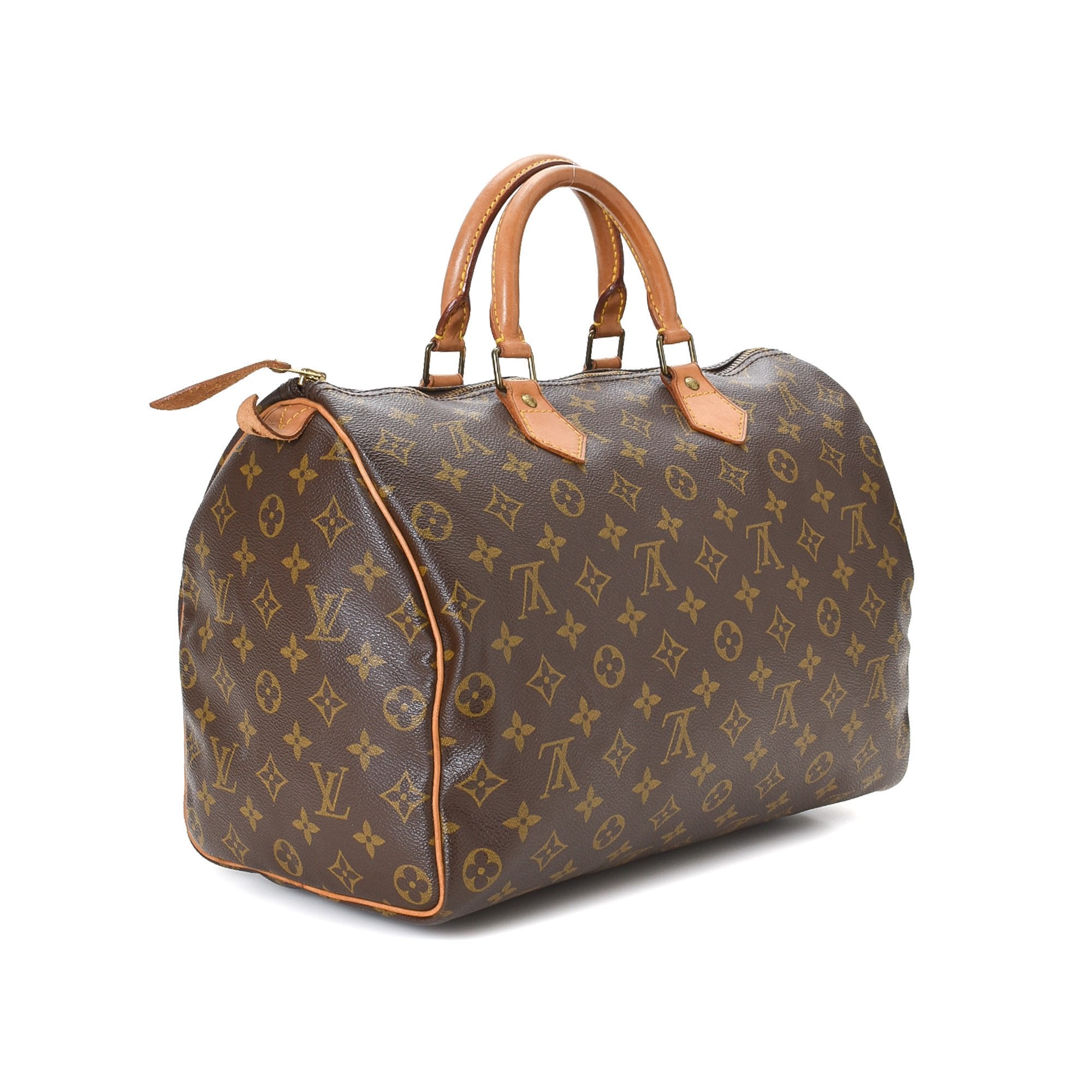 capnwrap guarantees this is an authentic vintage Louis Vuitton Speedy 35 handbag. Crafted in monogram coated canvas, this classic handbag comes in brown.