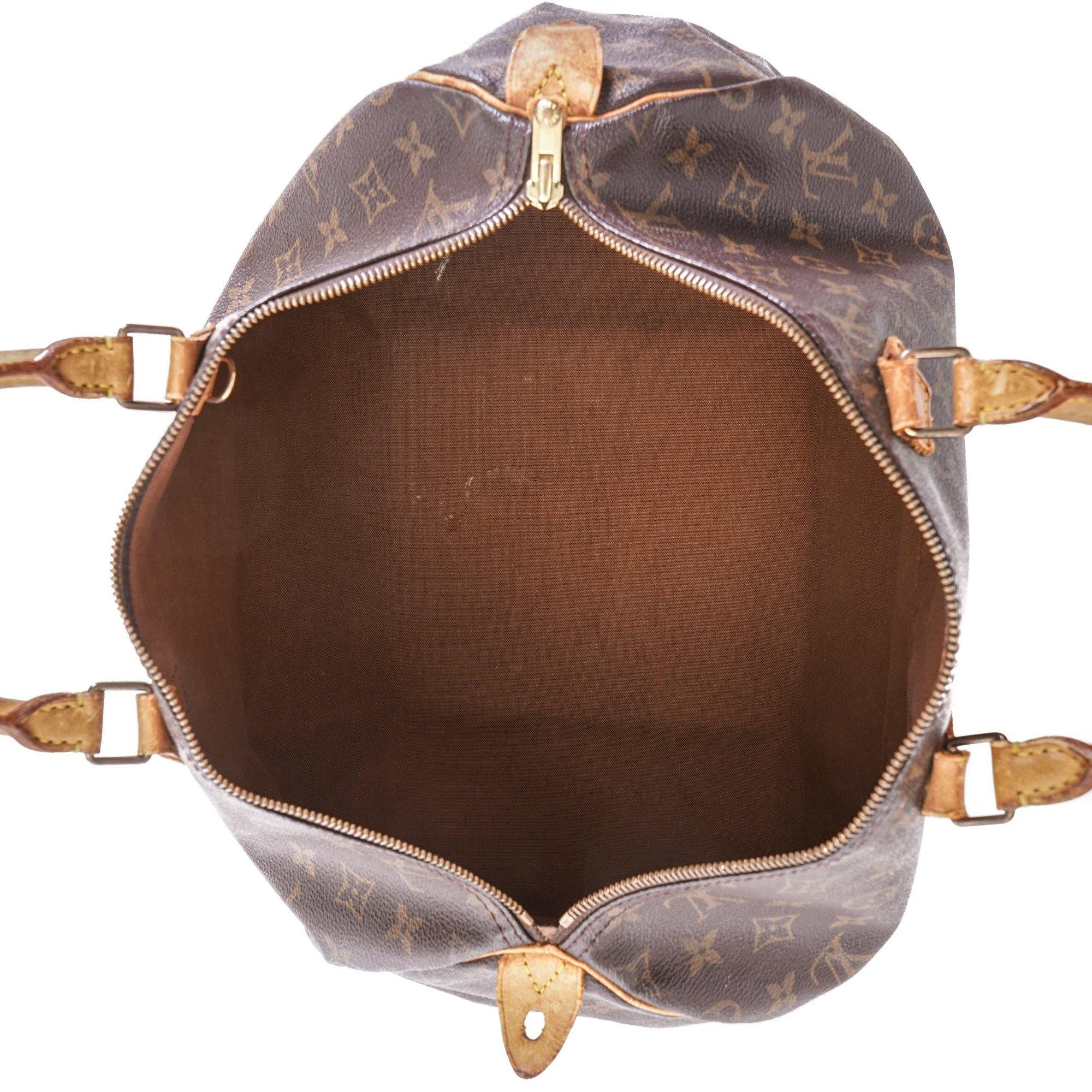 capnwrap guarantees this is an authentic vintage Louis Vuitton Speedy 40 handbag. This chic bag was crafted in monogram coated canvas in brown.